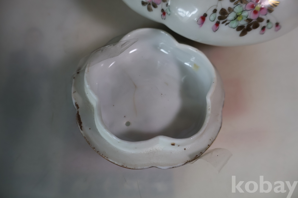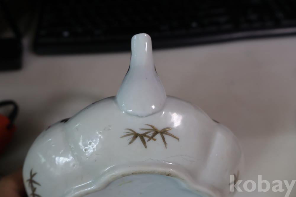 각형 처리 된 주전자 임니다 오리지날 손잡이는 삭아서 대체 손잡 뚜겅에는 세월의 유가 보임니다 바깥으로는 보이지 않읍니다 7번 사진멋진 그림 특이한 디자인을 가진 1930대의 명품 임니다