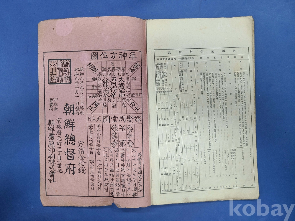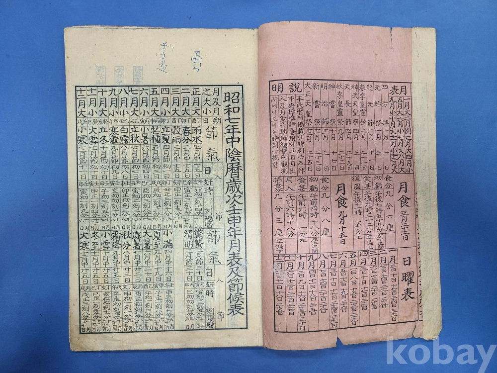 朝鮮總督府編製 소화7년 朝鮮民曆/앞표지 보수함,뒷표지 하단 일부 찢어짐