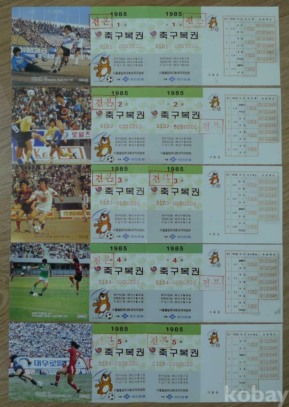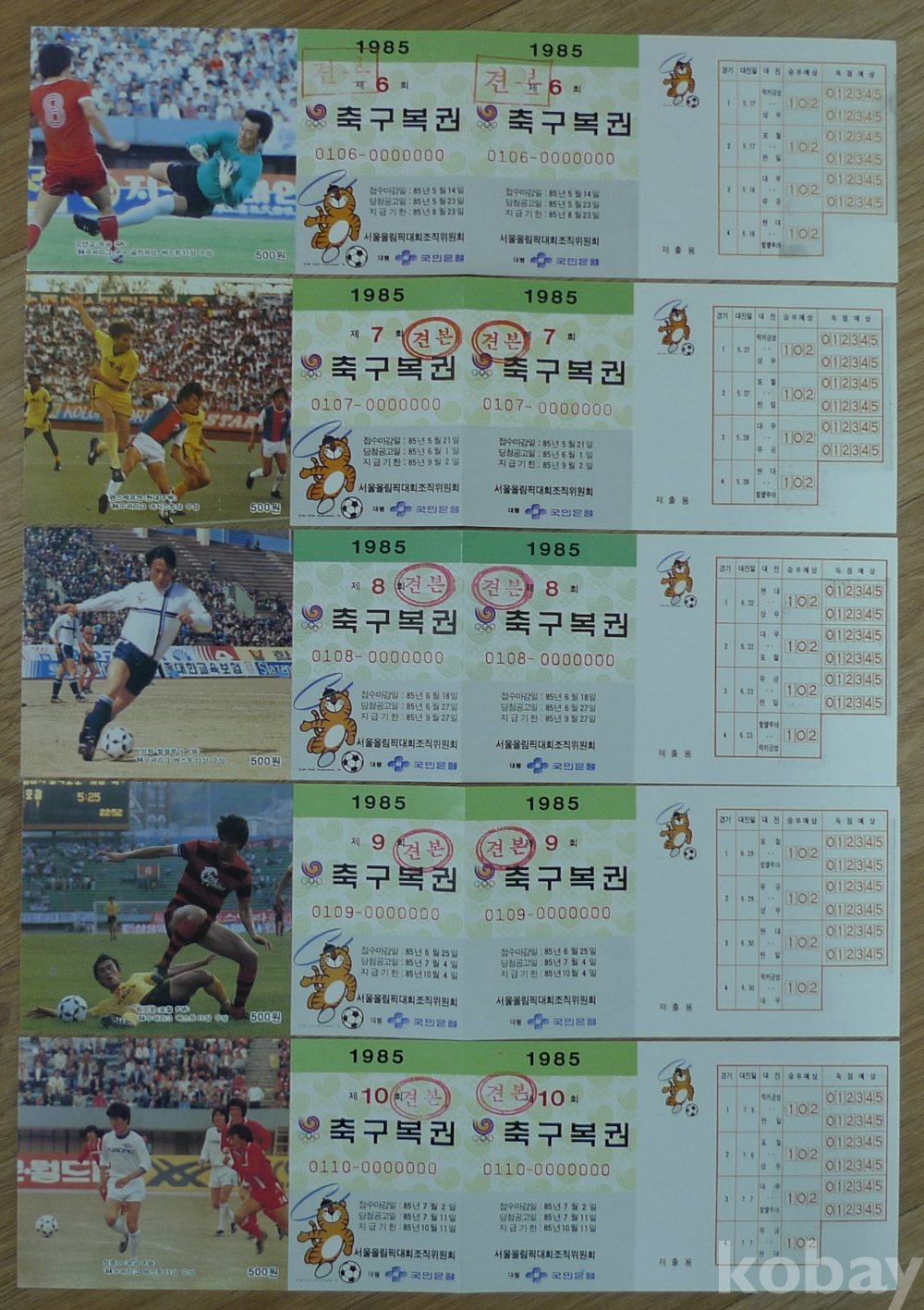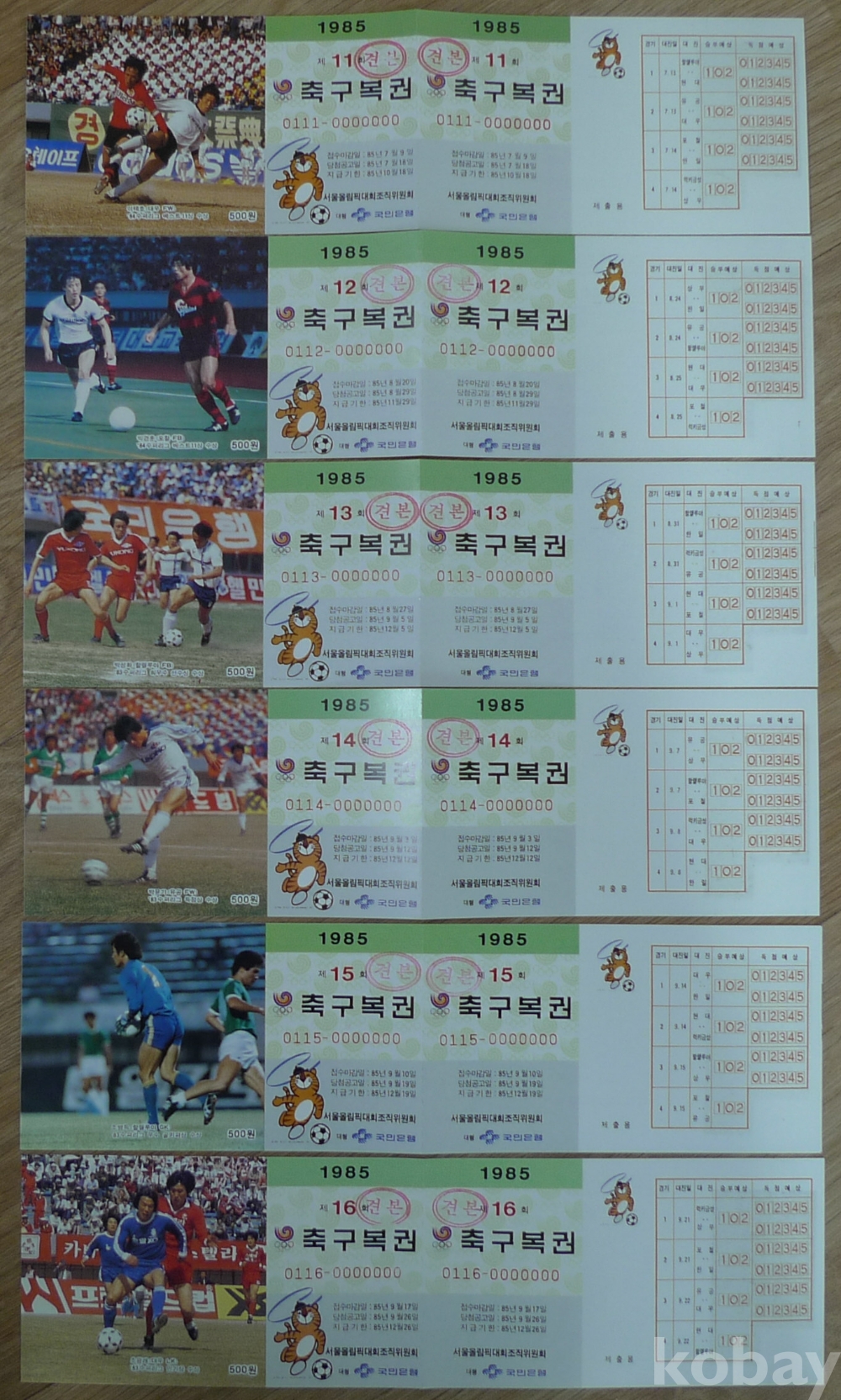 1985년 체육복권 1-16회 셋트 견본