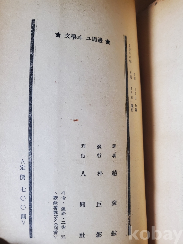 1. 문학과 그 주변, 조연현, 인간사, 1958년, 191쪽, 상태 상, 사진 참조