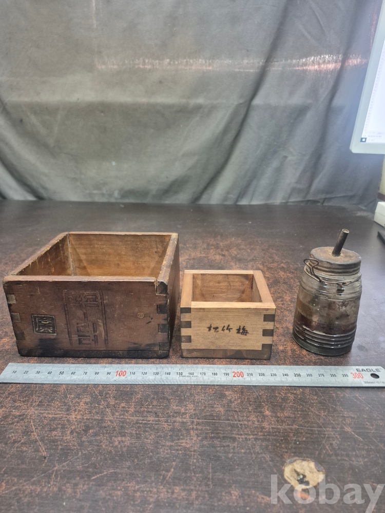 액용 1리터용 원목됫박 1점 소형원목됫박 1점 1960년대 유등 1점 3점 일괄 14*14*8