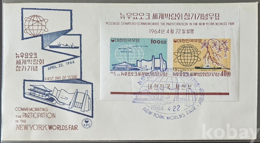 뉴욕 세계박람회 참가 기념 시트 초일봉피