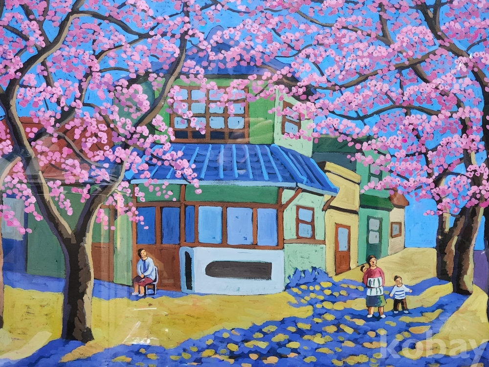설종보 화백 진해 벗꽃 길 아크릴 30호 원목 새액자 입니다