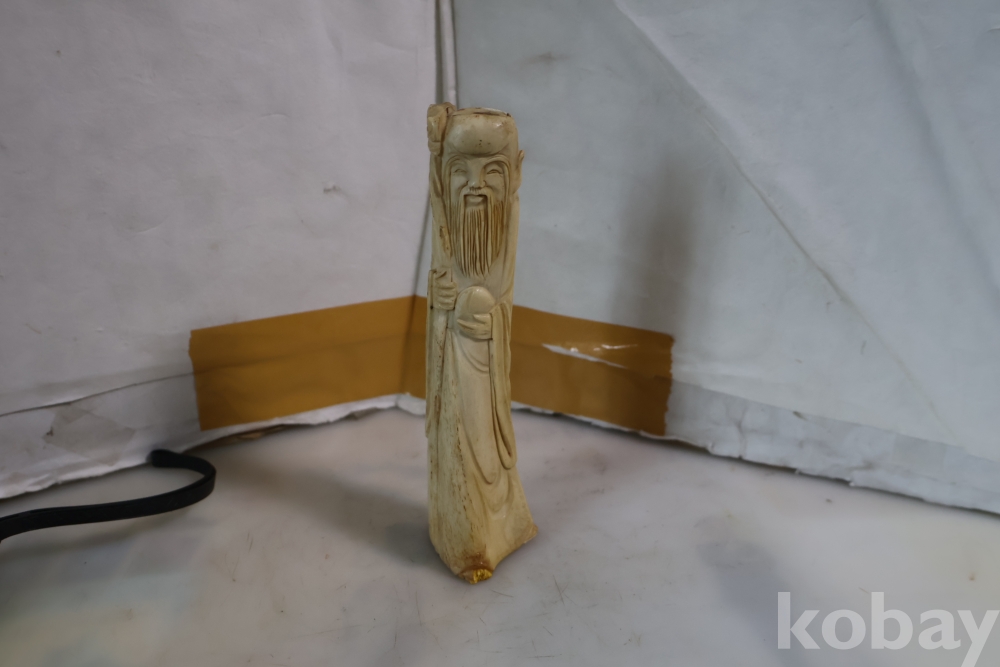고미술 도사 조각상 이며 정성과 섬세함을 가진 1920 전후의 명물 이며 고태미를 가진 명물 임니다 바닥 앞쪽에는 세월의 칩이 보이는 단단 공예품 임니다 사진 참조 하세요