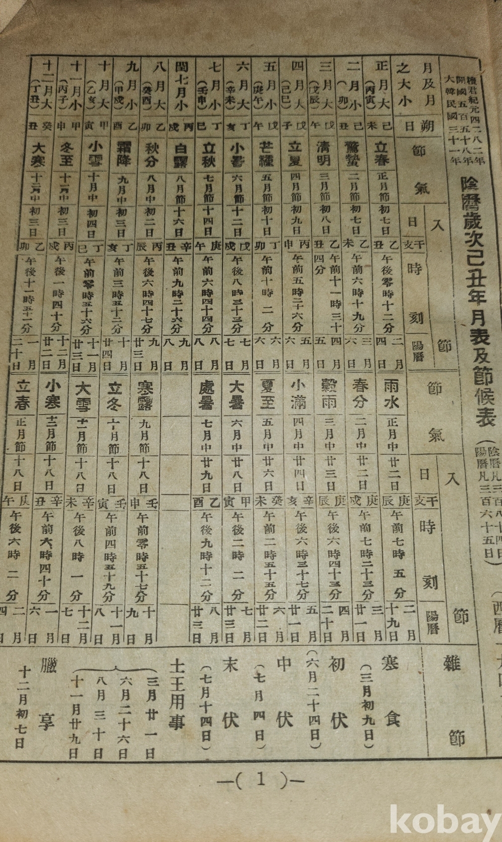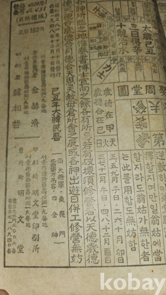 본 민력은 76년 전에 출간된 것으로 역사적 의미가 가미된 고서입니다,
