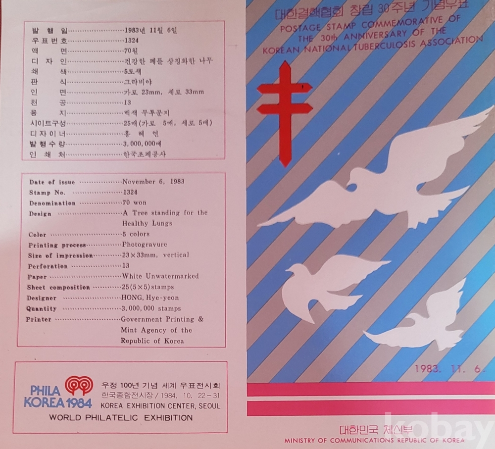 대한민국 체신부 발행 1983년 우표 예시표로 우표수집 애호가님들에게는 매우 귀한 보배같은 자료입니다,