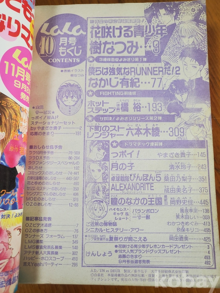 1. 월간 라라(통권 216호), 발행 하쿠센사(白泉社), 1992년, 508쪽, 일본판, 사진 참조