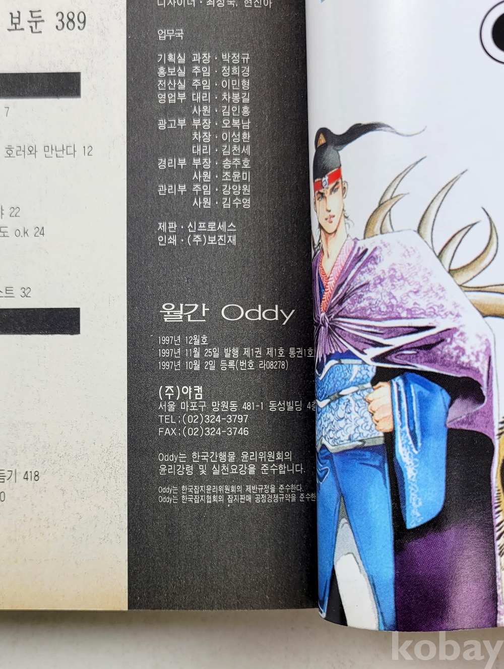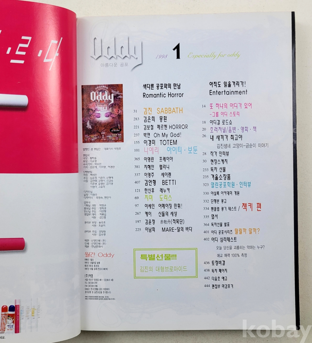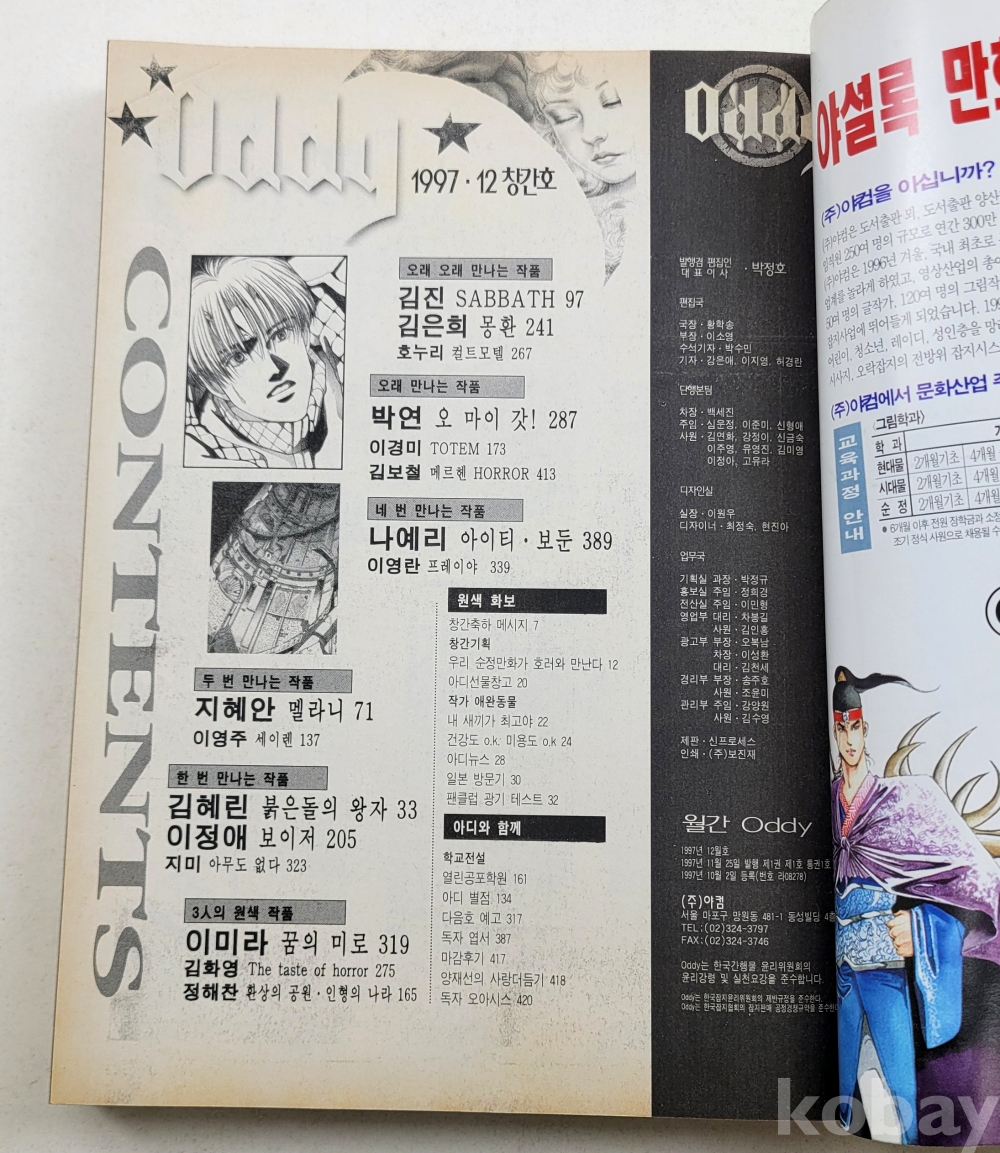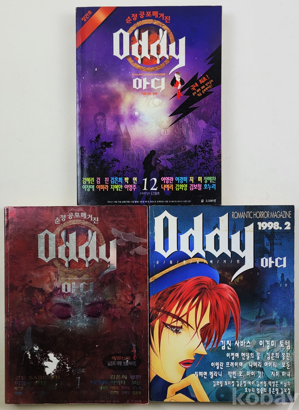 물 품 명 | 창간호 포함 / Oddy(아디) 순정공포매거진 / 1997년 12월호(창간호),1998년 1,2월호 총3권 / 월간학습만화 / (주)야컴 |