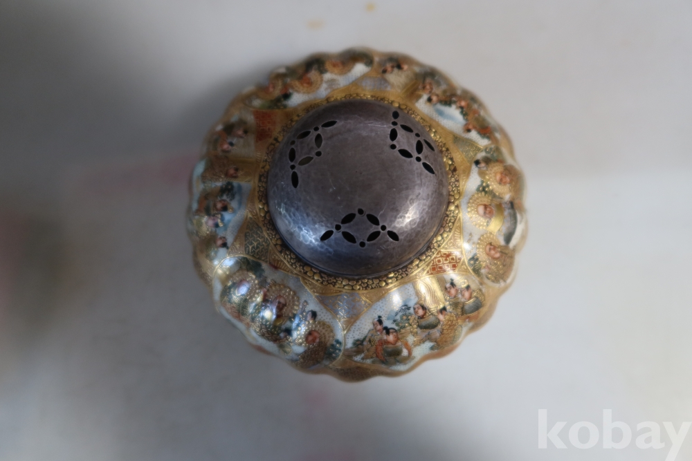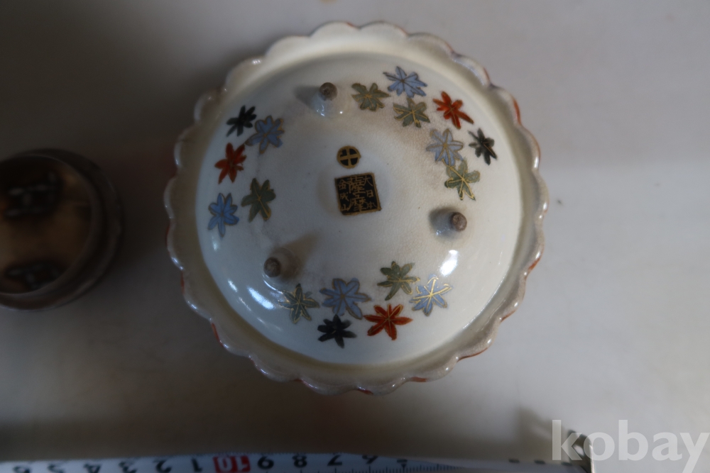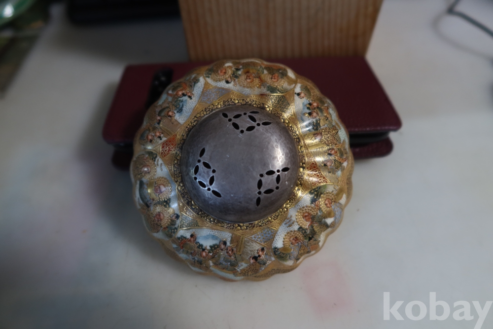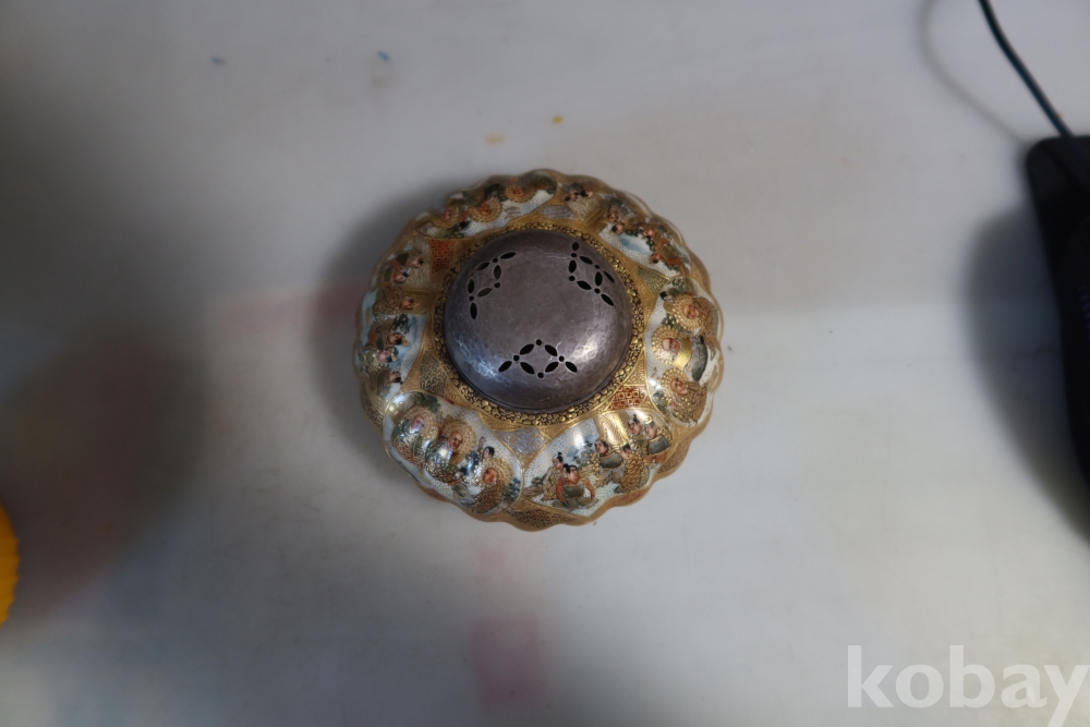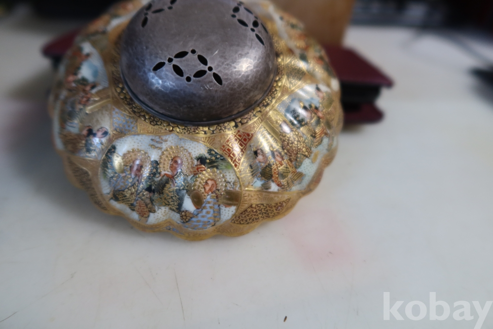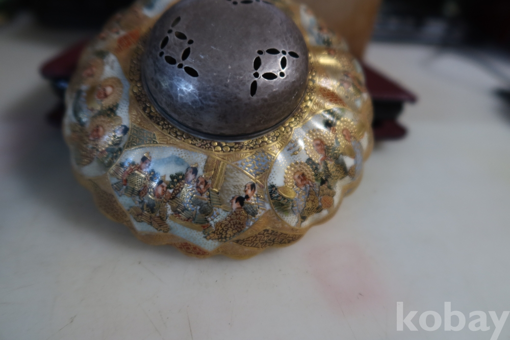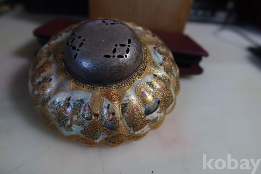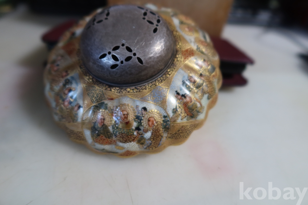 명치기의 사츠마 임니다 요철 되어진 몸통에 사무라이 공경의 모습을 치밀하게 묘사한 당대의 명품 이며 바닥에는 도공의 낙관을 가진 당대의 구미 유럽 수출 도자기 이며 뚜겅은 은 임니다 사용감을 가진 귀한 명품 임니다