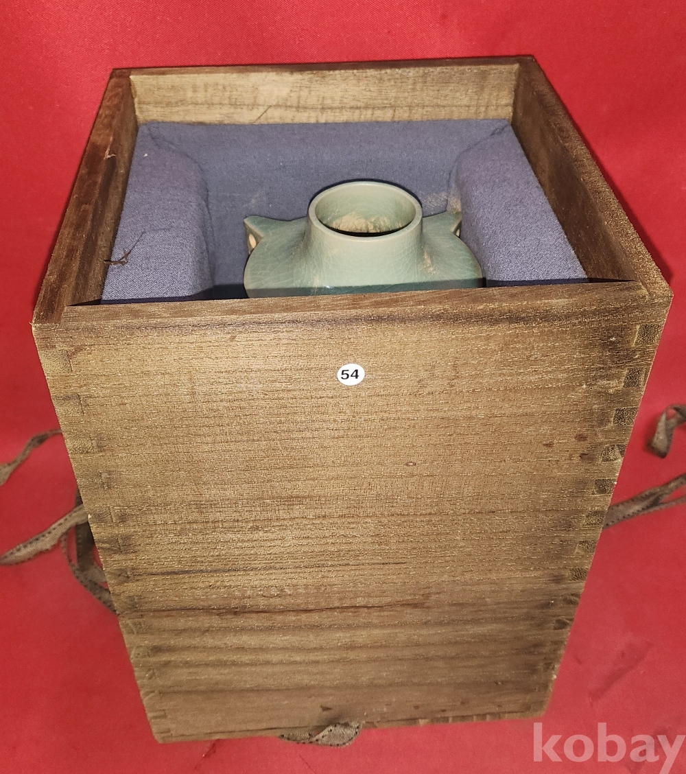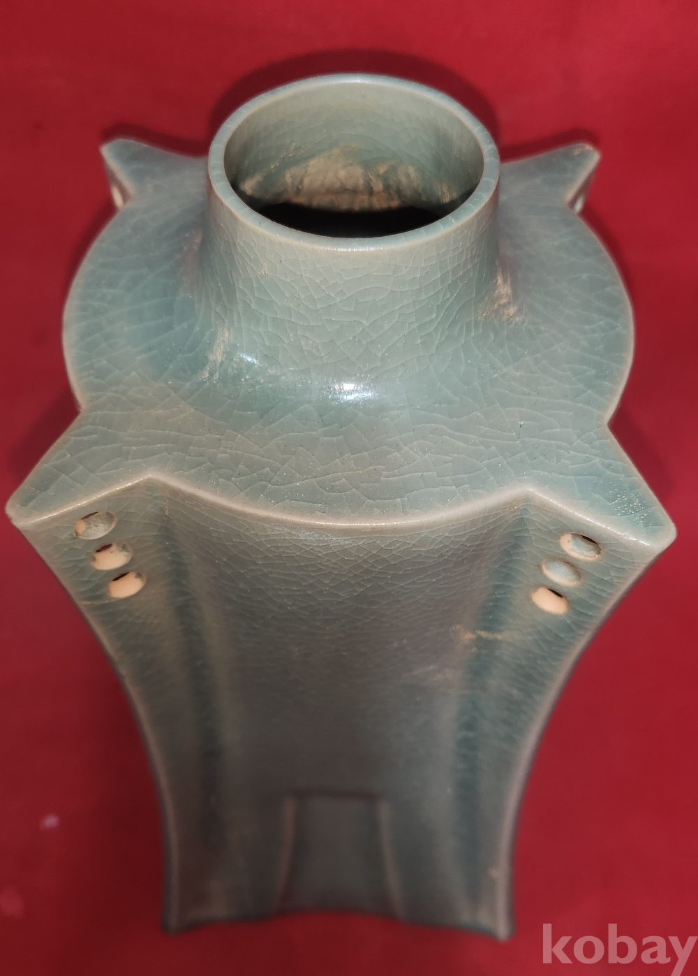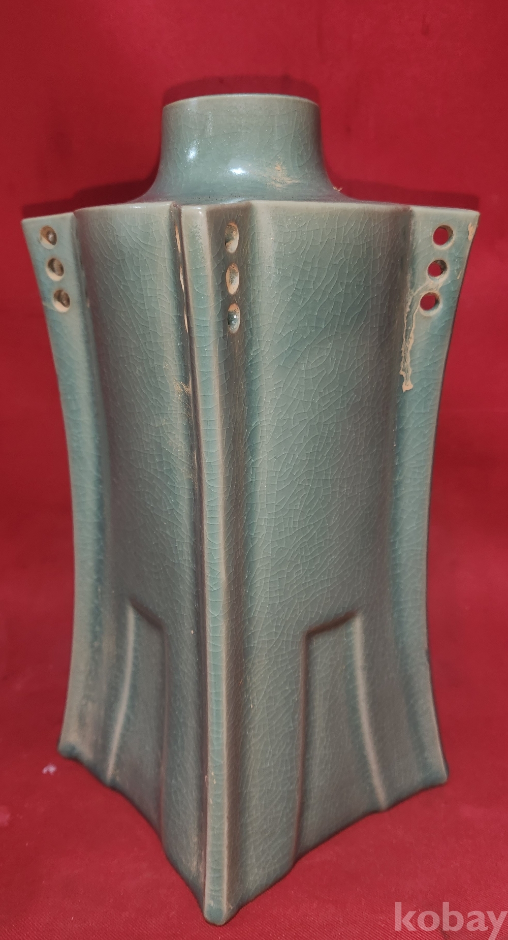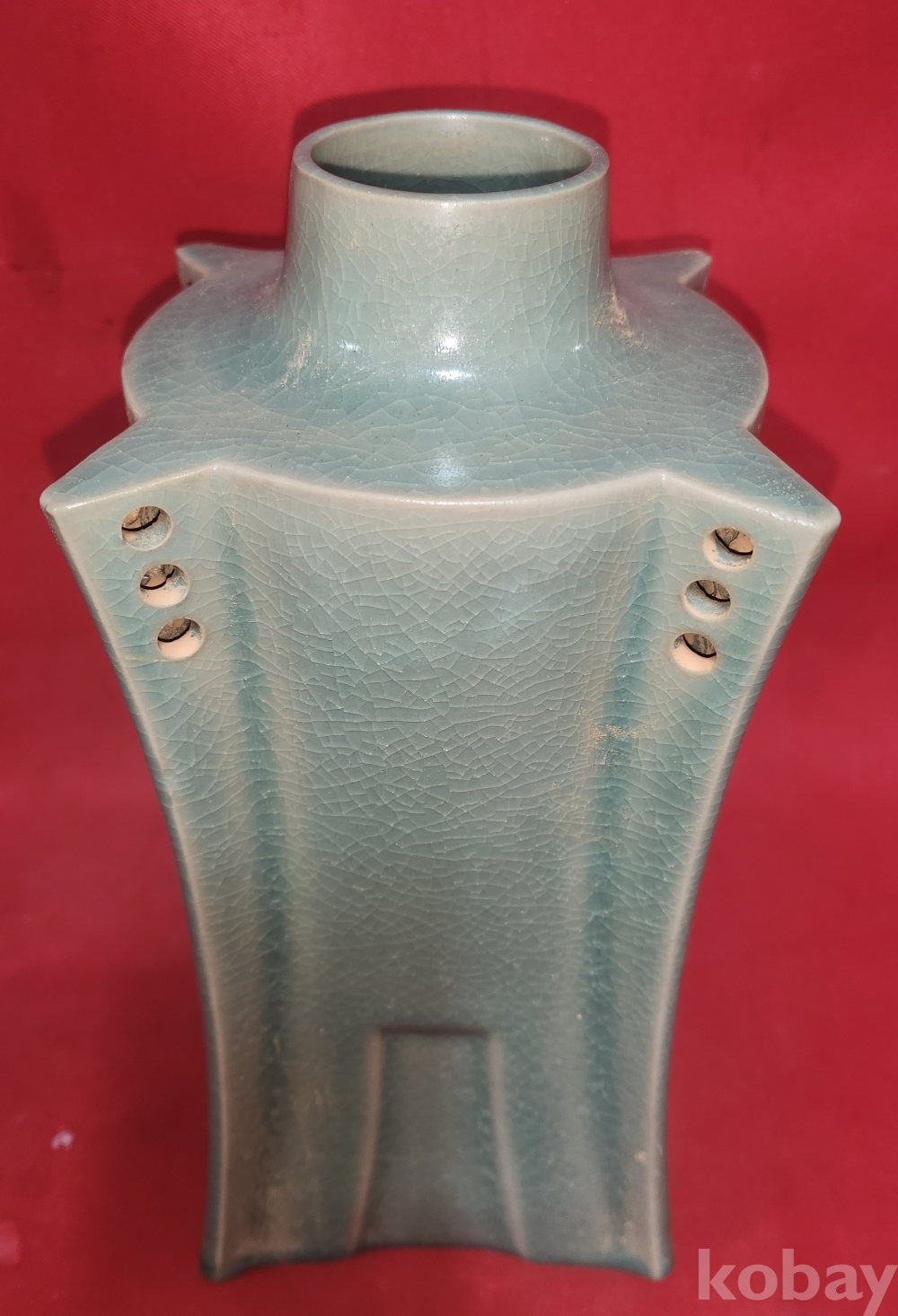 여요(汝窯)청천유(天晴釉) 투각(透刻)으로 완성된 사각병입니다,