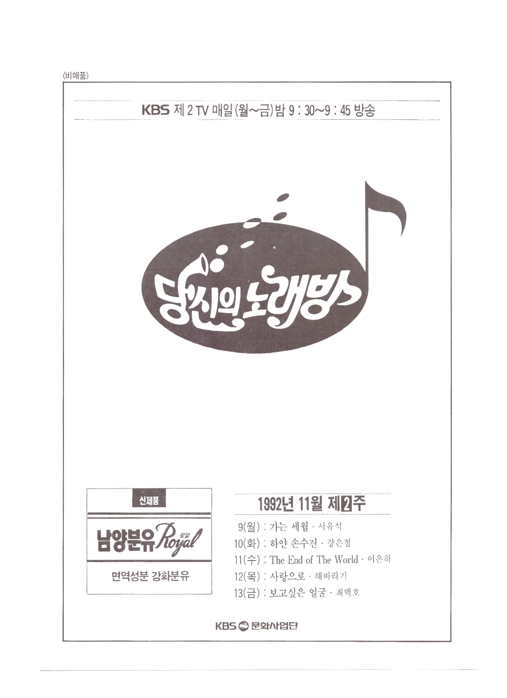 (1) 1992년 11월 9일~13일 방송