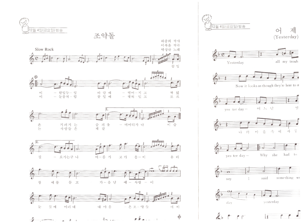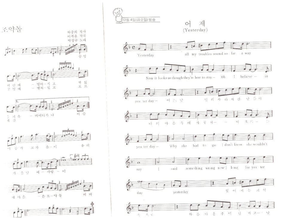 정소녀의 '그 사람', 박상규의 '조약돌' 과 'Yesterday' (비틀즈 노래 악보) 등 6곡 수록