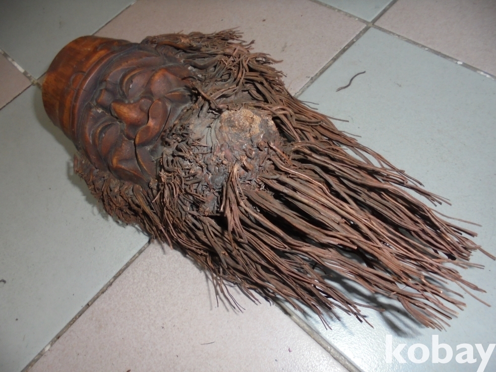 통대나무 뿌리로 만든지 오래 되였으며 특이하게 턱에 혹뿌리가 아주멋있고 예술적인 너무잘만든 통대나무뿌리로 질기고 안부서지는
