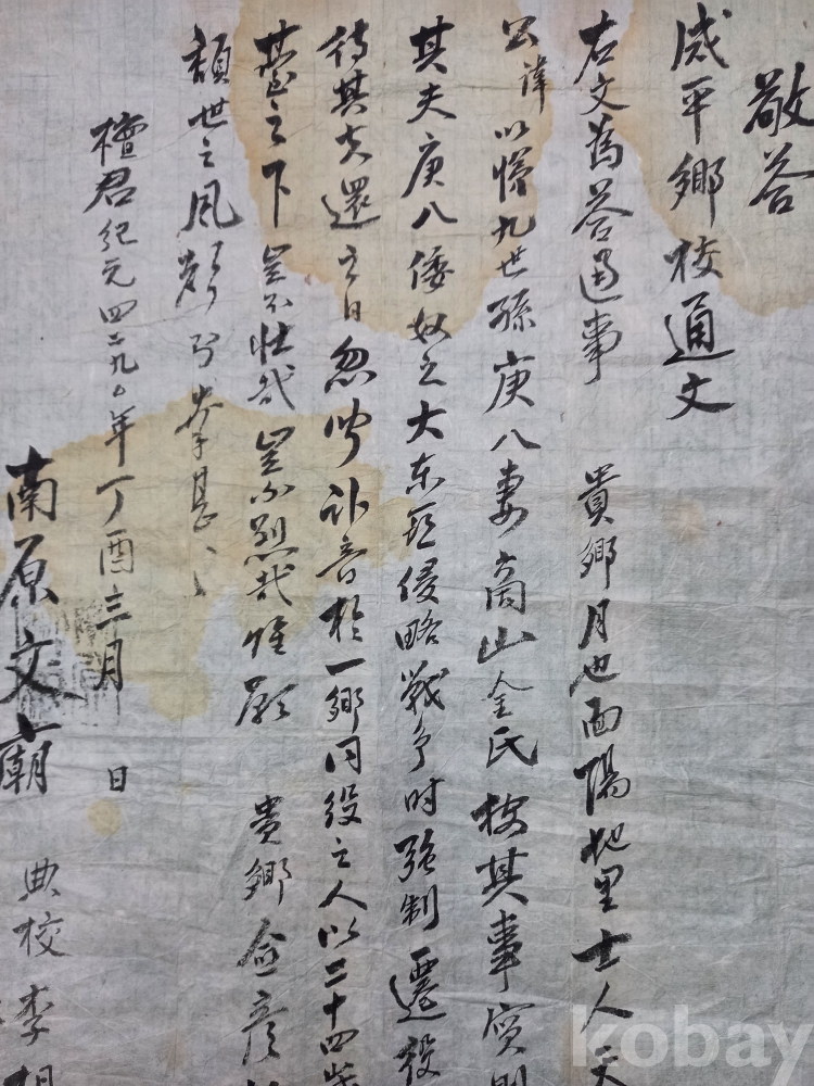 문서에는 황하(黃河)나 월파면양(月巴面陽)과 같은 지명 및 "왜노지대동아침략(倭奴之大東亞侵略)" 등 역사적 사건을 암시하는 내용이 포함되어 있습니다.