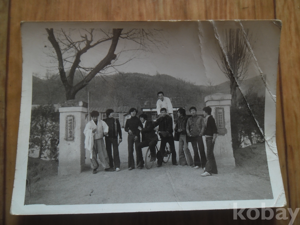 흑백사진: 예곡국민학교 정문 앞에서