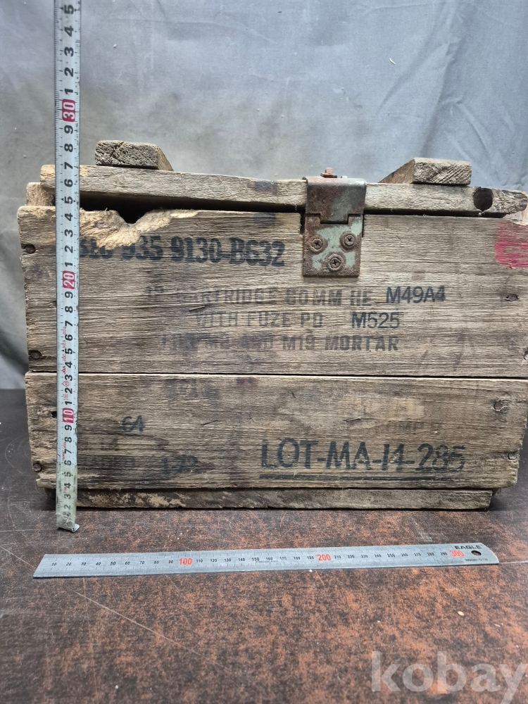 1960-70년대빈티지 원목 81미리 고폭탄 탄약상자 40*36*28