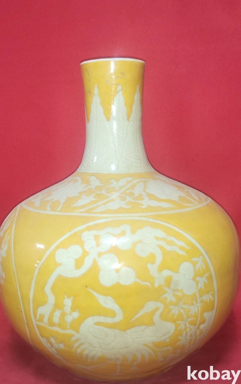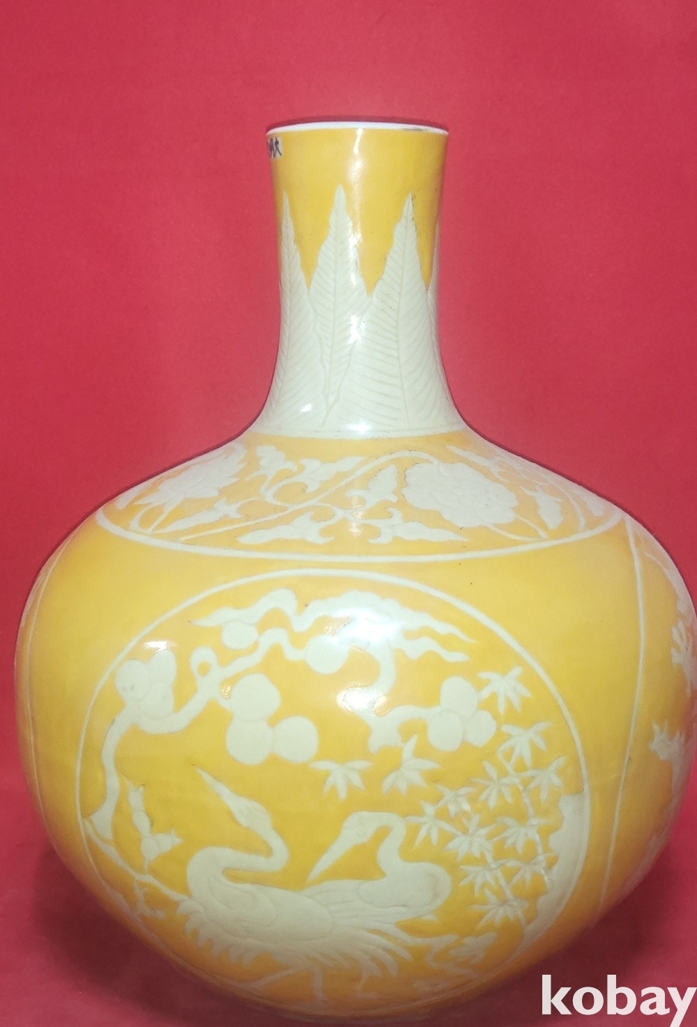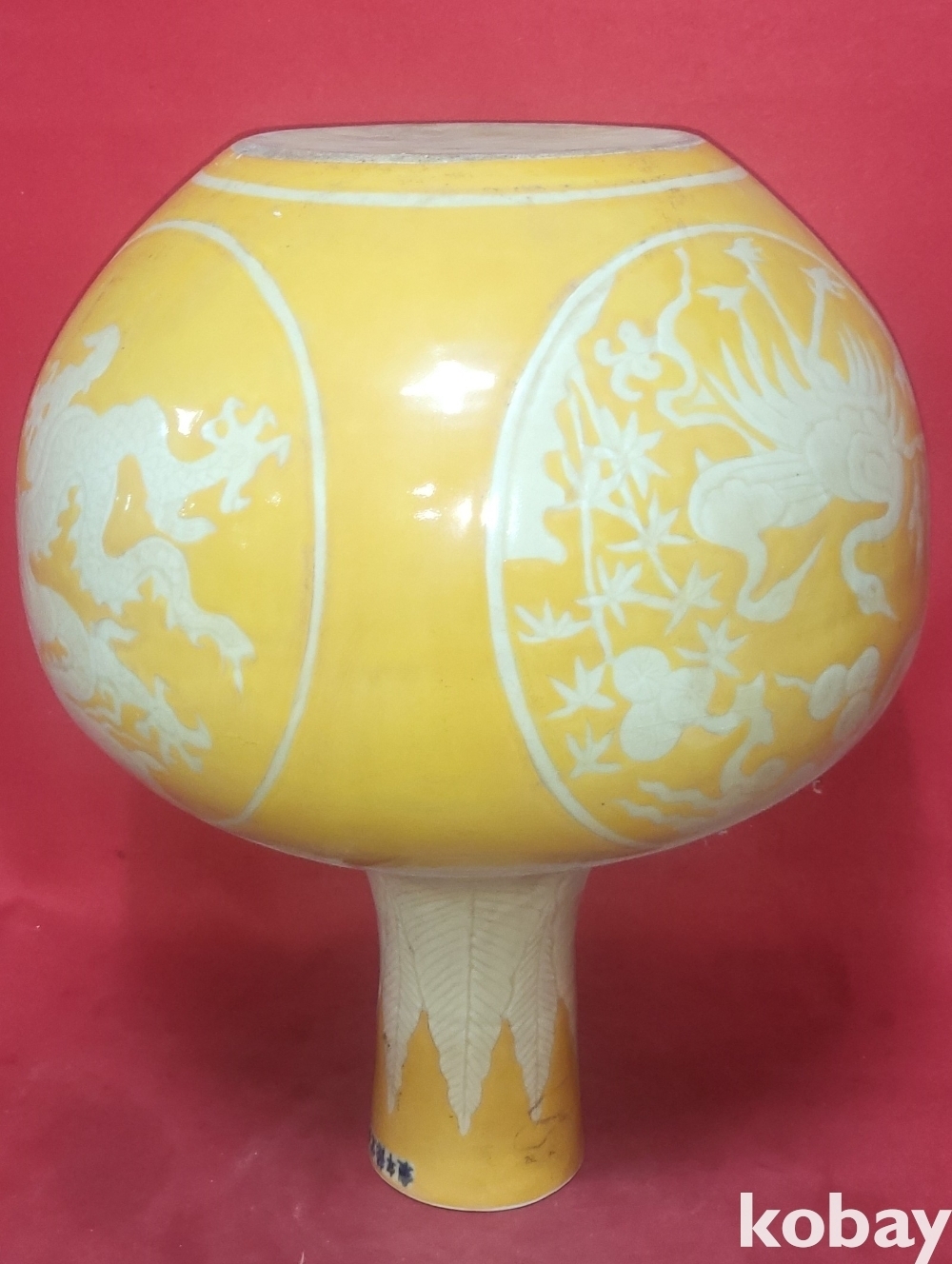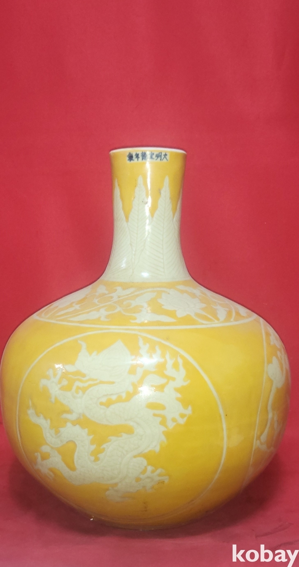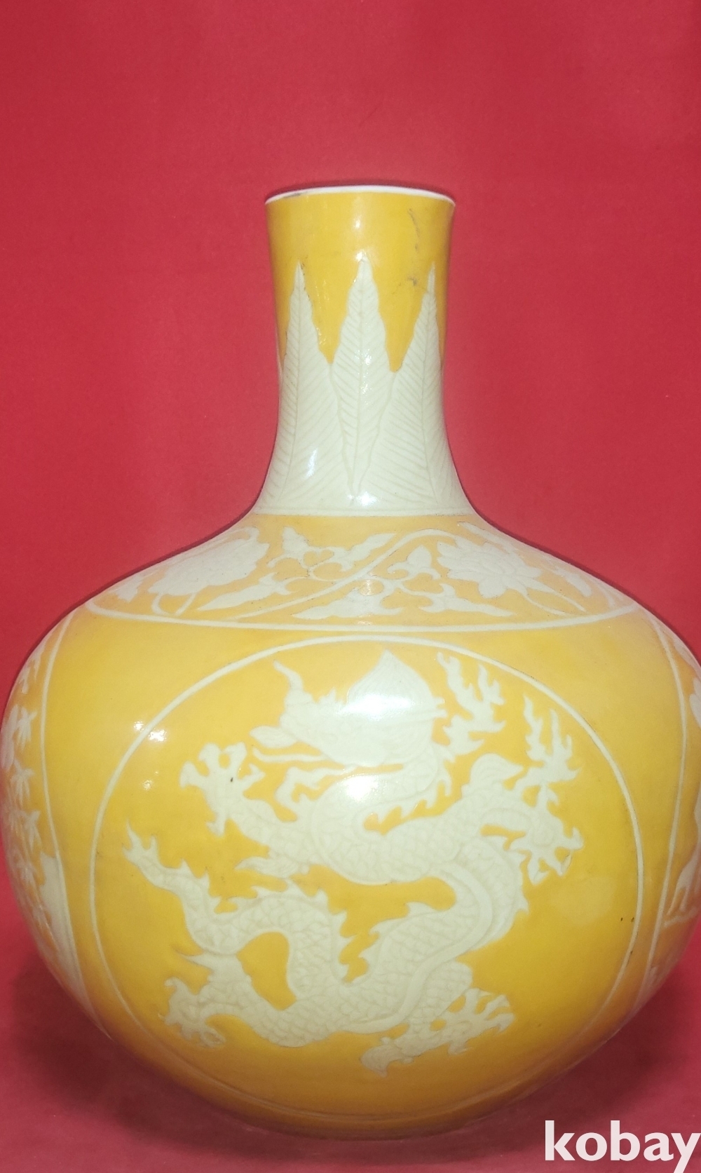 대명선덕연제 관지 황유 용과 학문양 대형급 천구병입니다,