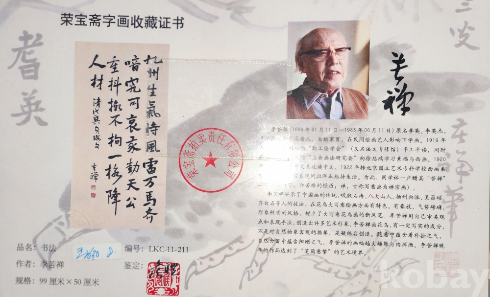 중국화가  이고선(李苦禪) 作  서예품입니다,