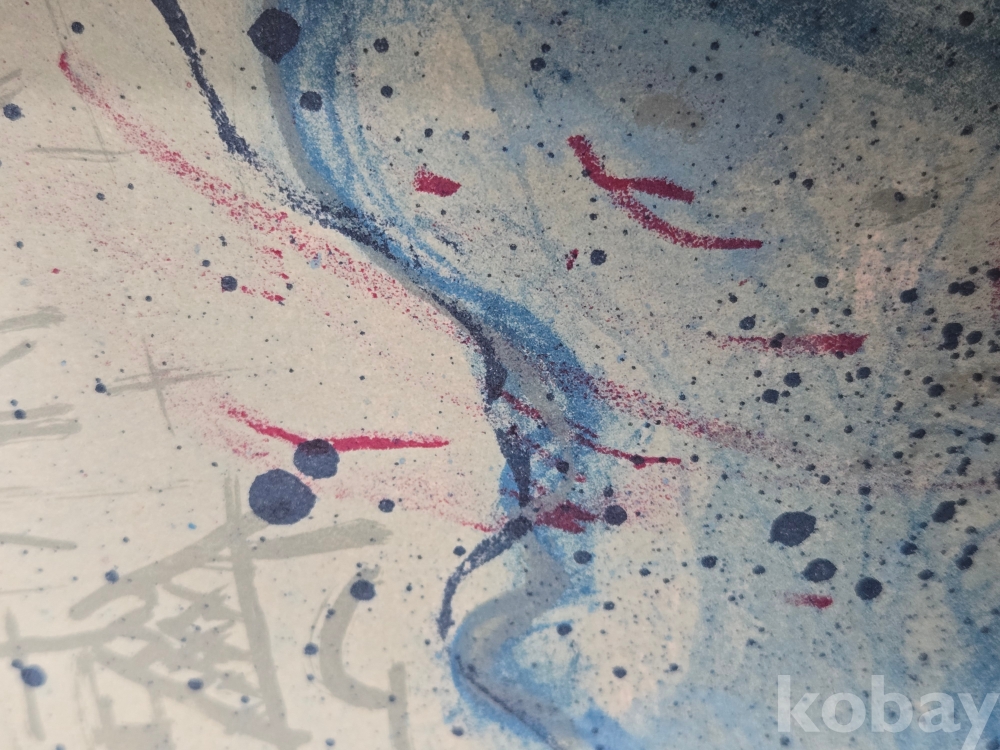 실크스크린과 드로잉, 뿌리기 흘리기등의 다양한 기법이 혼합된 오리지날작품.