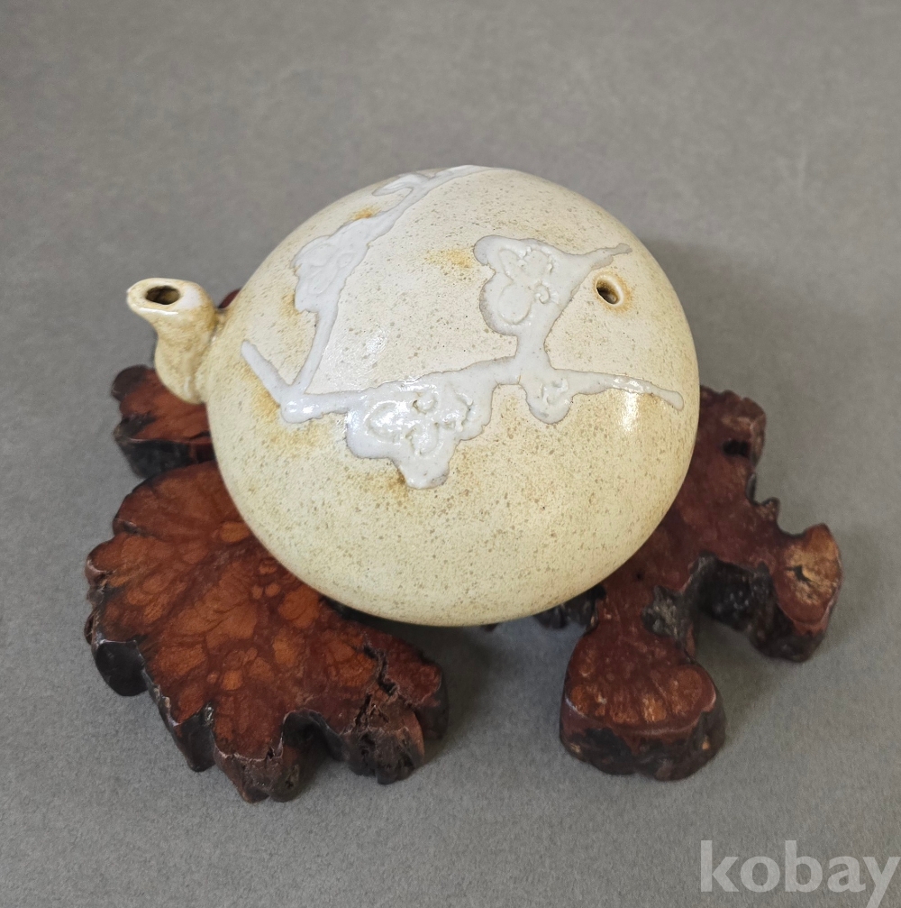 작품의 색상은, 매화 도안은 백자의 흰색으로 보이며, 전체 보이는 부분의 색상은 백자의 색상을