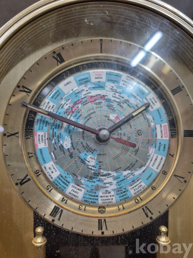 1980년대 국제 공항관리공사 이사장 증 세계 탁상 시계 정상작동 유리 깨짐있어요 6센티 사진 확인 19*10*26