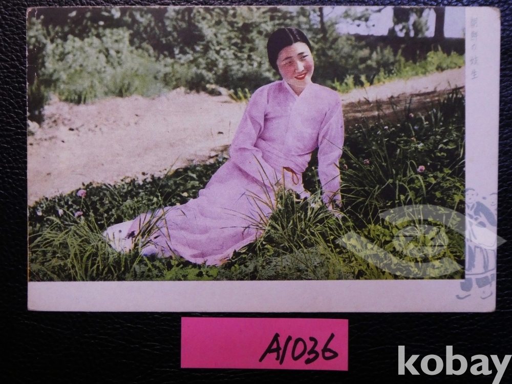 ▣근대한국엽서(진본): 잔디에 앉아 있는 기생/1매/역사자료/일제강점기 사진엽서, 그림엽서, 회엽서. A1036