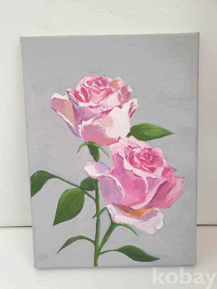 [천원경매] 12-517 유화 or 아크릴화 캔버스 꽃 그림액자(24*33cm)