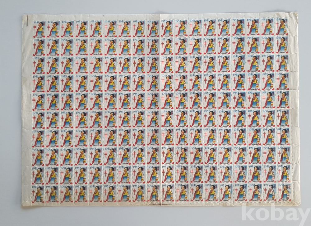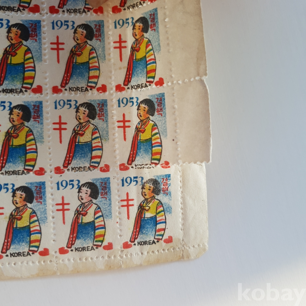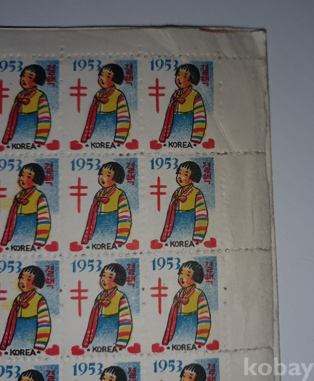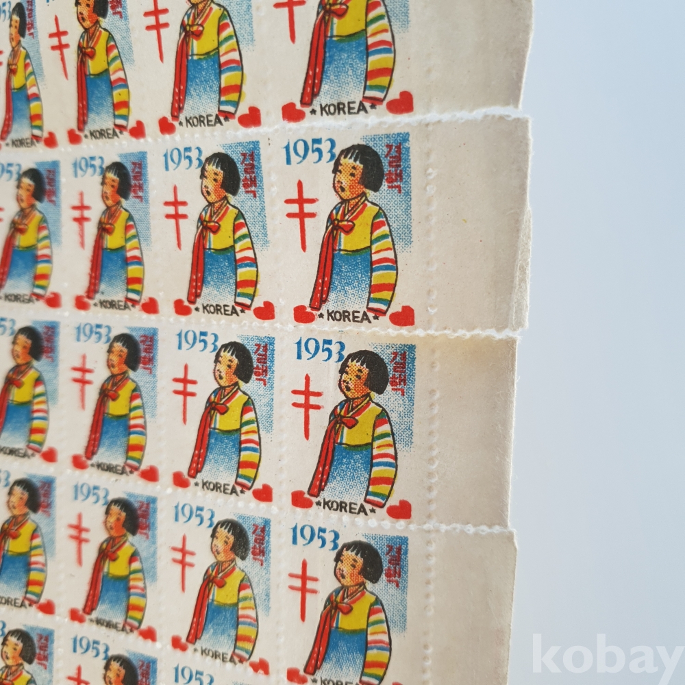 1955년. 색동저고리 소녀. 크리스마스씰 전지