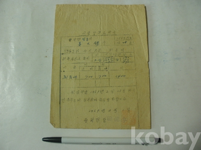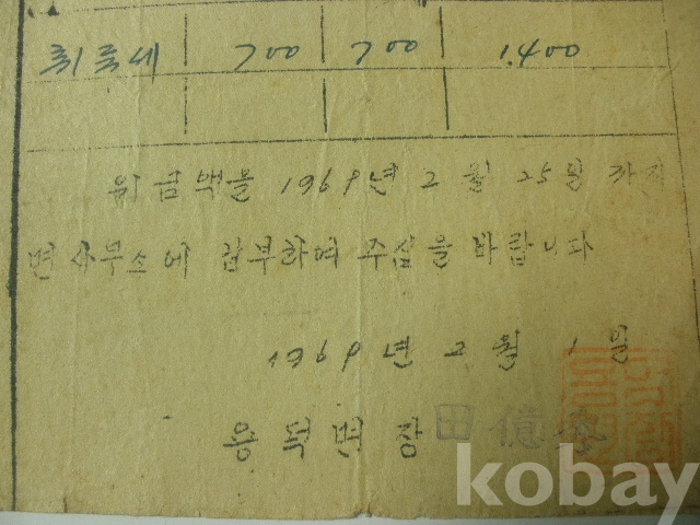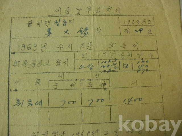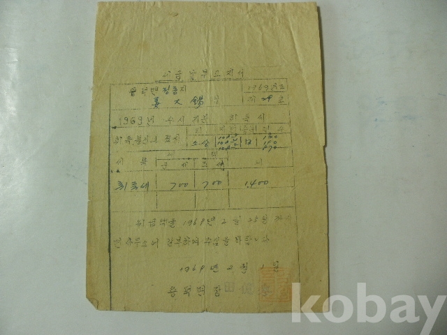 세금 (취득세) - 납부 고지서 (1969년, 용덕면장)