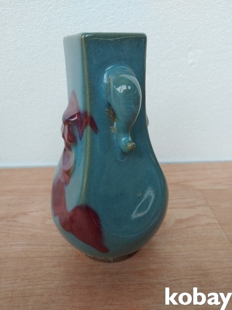 코끼리 모양의 귀가 달린 도자기 입니다.