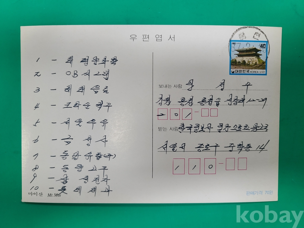 **** 우표,엽서,실체봉피류는 배송비를 선결제 하시면 등기우편으로 보내 드립니다