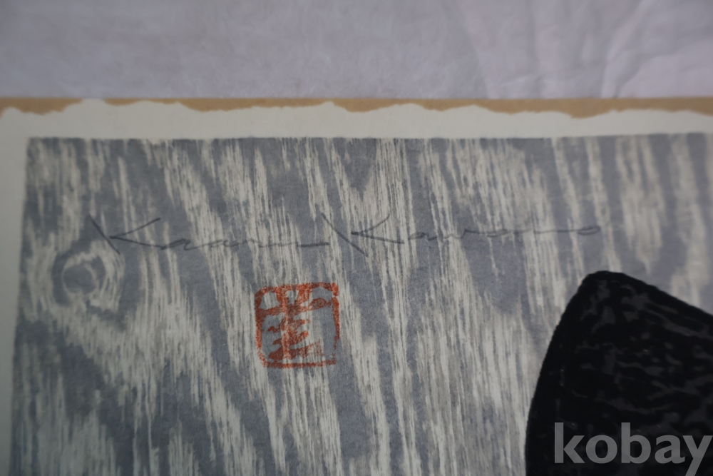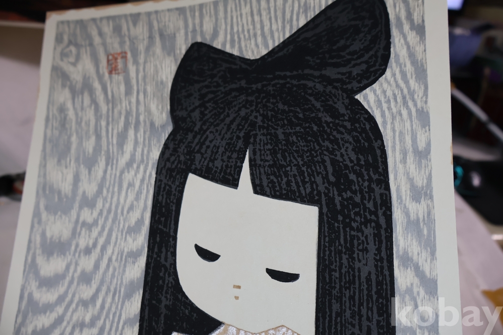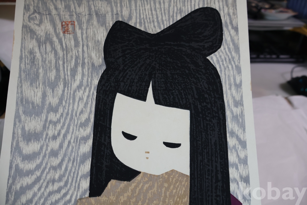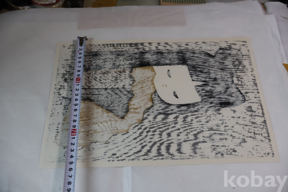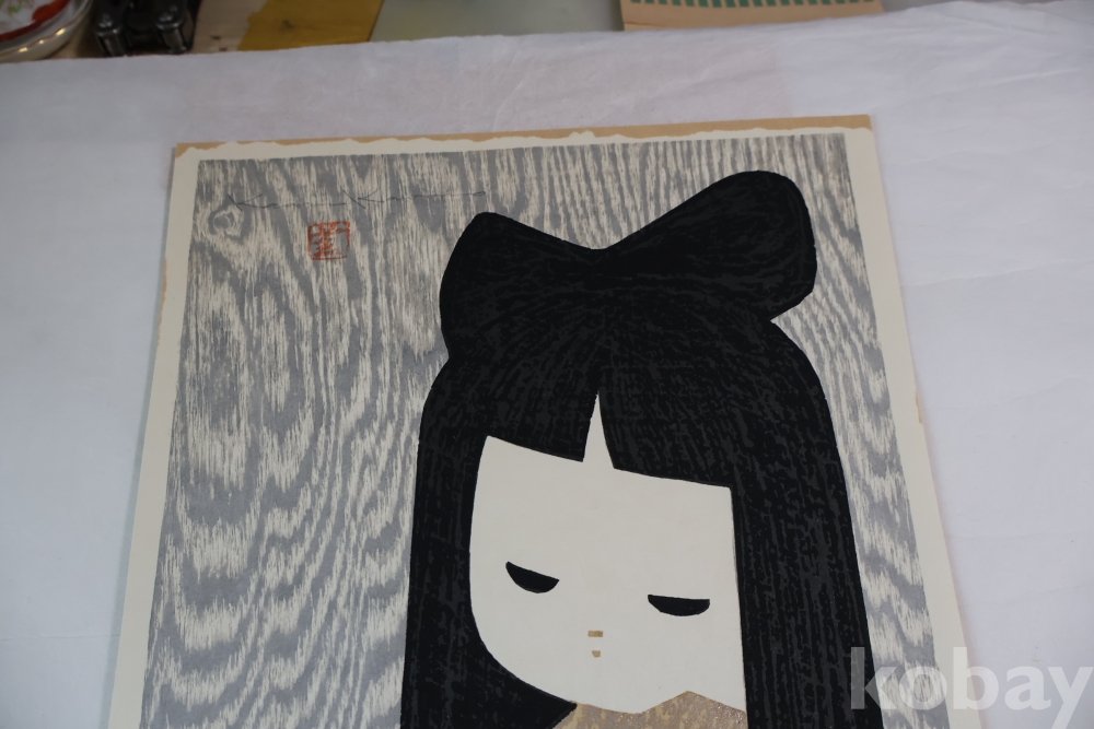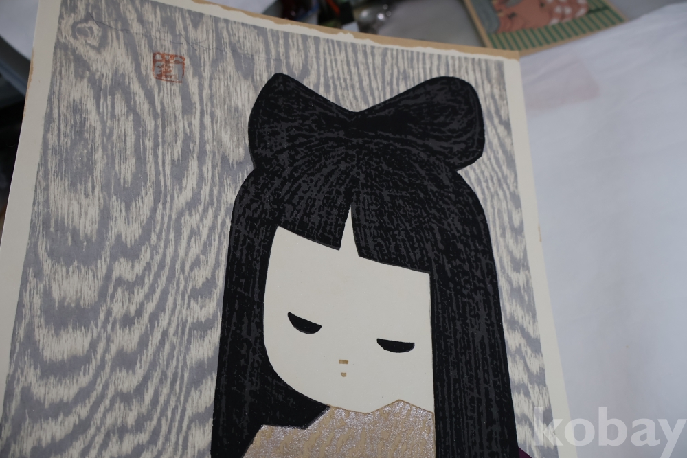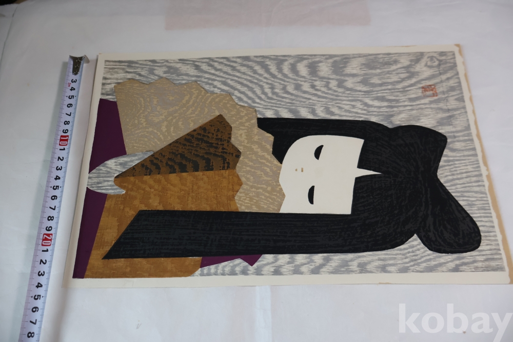 대형 극히 귀한 사이즈 현대 목판화의 대가 가오루의 명작 소와 부채 임니다 특유의 색감 디자인을 가진 명작 임니다 1916ㅡ1965