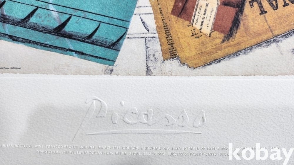 스폐인의 유명 서양화가 피카소(Picasso ) 사인이 보이는 압인 판화입니다,