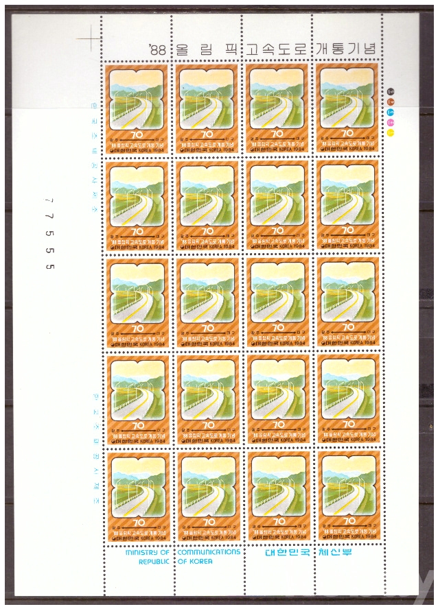 (서울올림픽) 1984.6.22 '88올림픽 고속도로 개통 sheet of 20 MNH