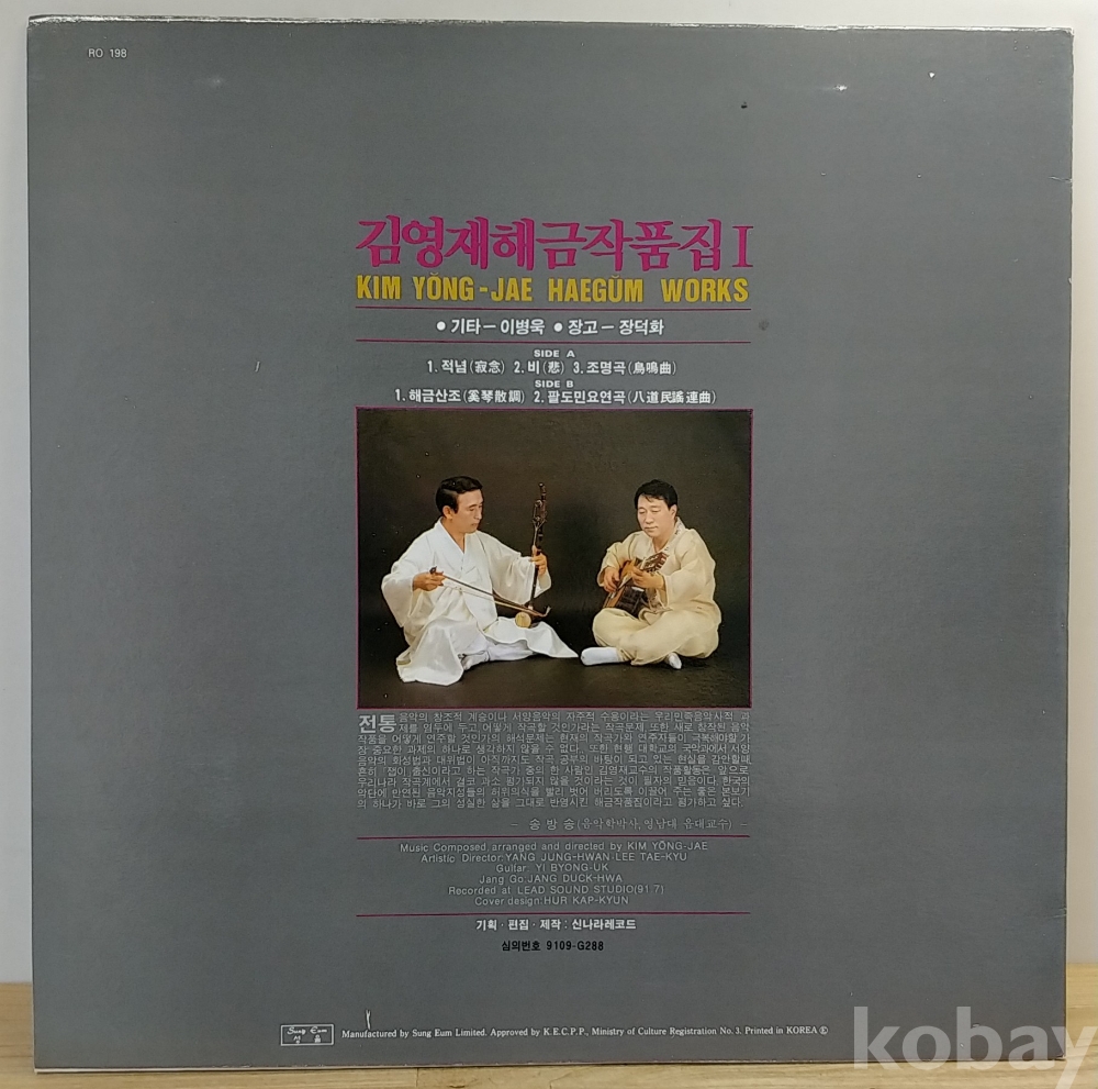 김영재 해금작품집1 (적념 / 해금산조) 기타 - 이병욱, 장고 - 장덕화, 1991년 신나라레코드