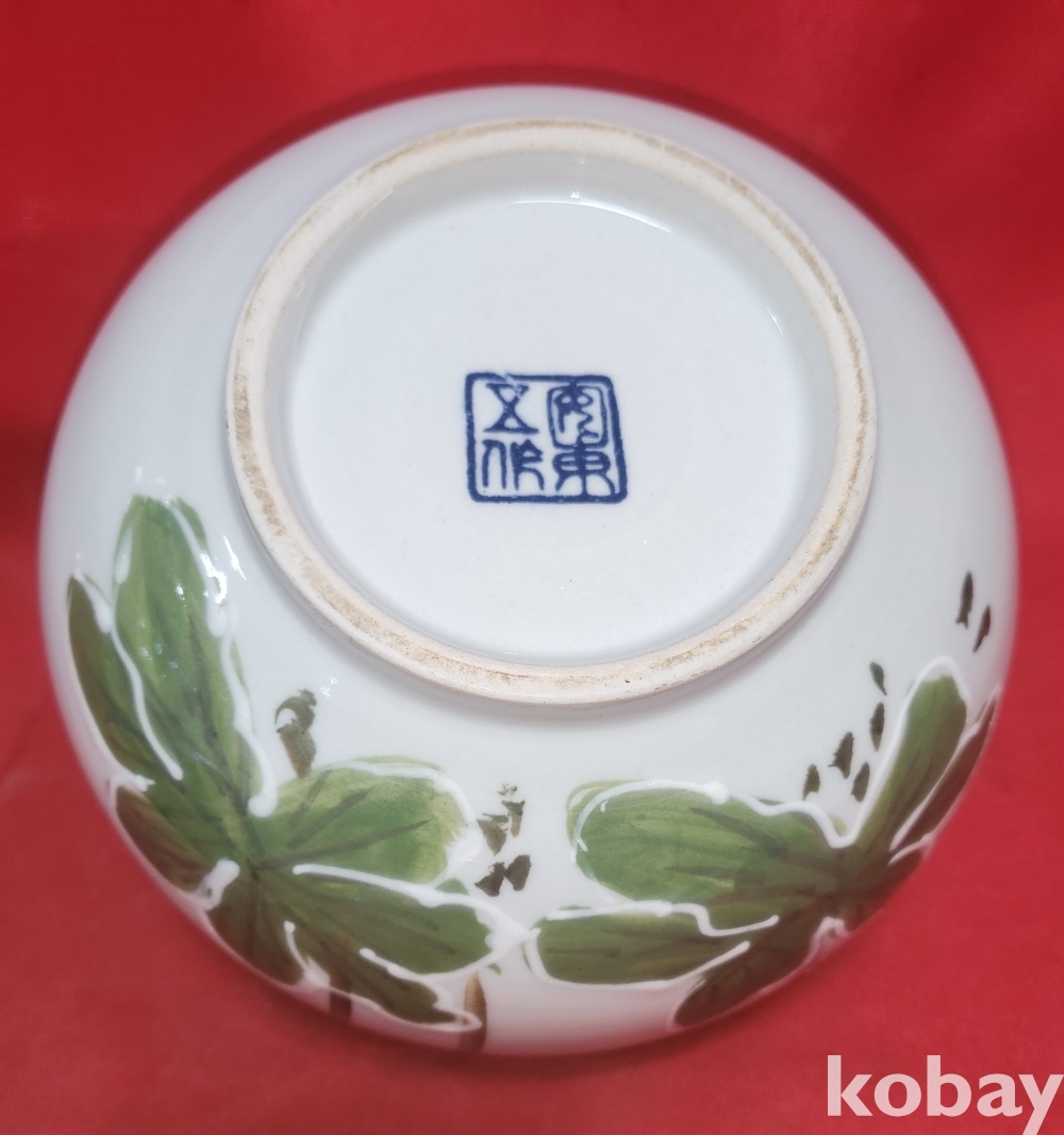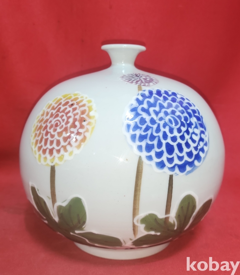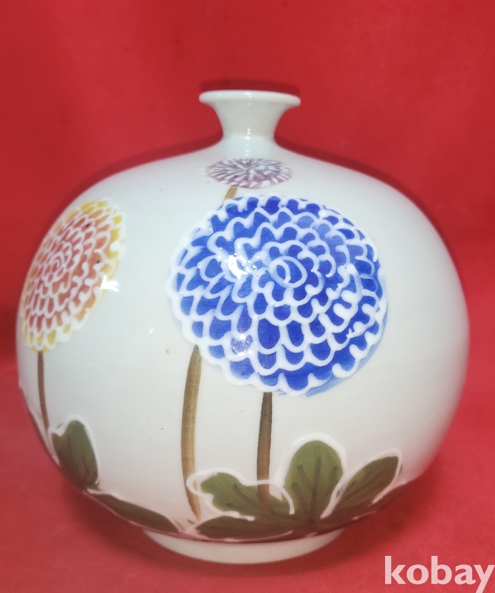도예가 안동오 수결이 보이는 분채 꽃문양 소구병입니다,