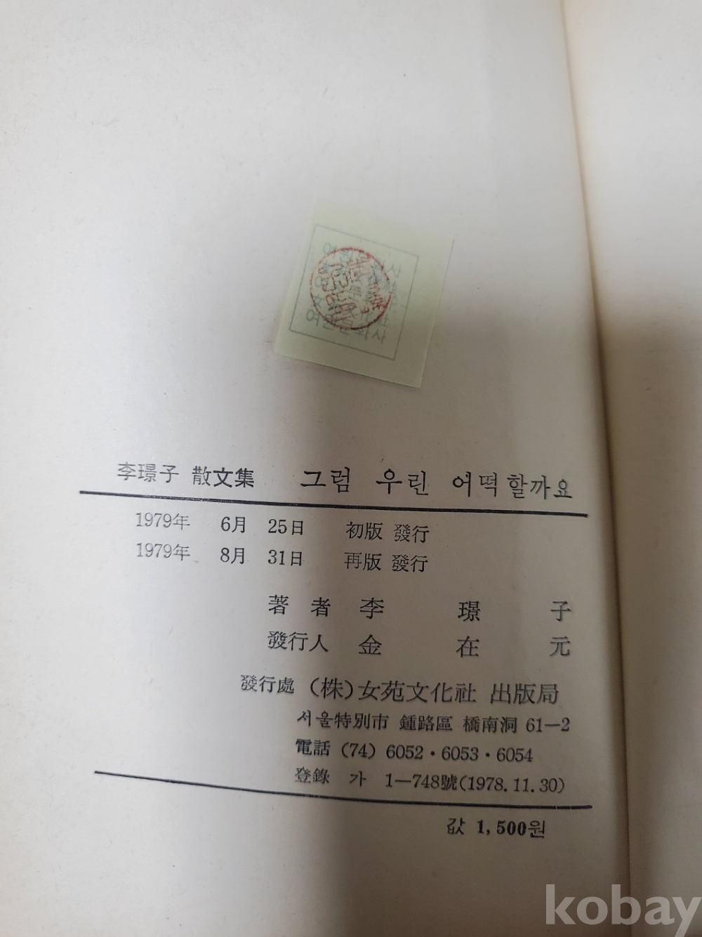 1. 그럼 우린 어떡 할까요, 이경자, 여원문화사, 1979년, 267쪽, 상태 상, 사진 참조
