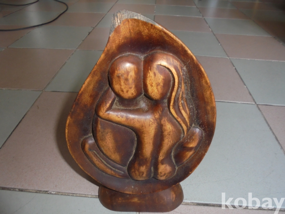 사랑의 하트 복숭아모양에 남여가 사랑하는 조각이되여있는 질좋은 나무로 잘만든 뜻깊은 고색의 사랑하는 나무조각품