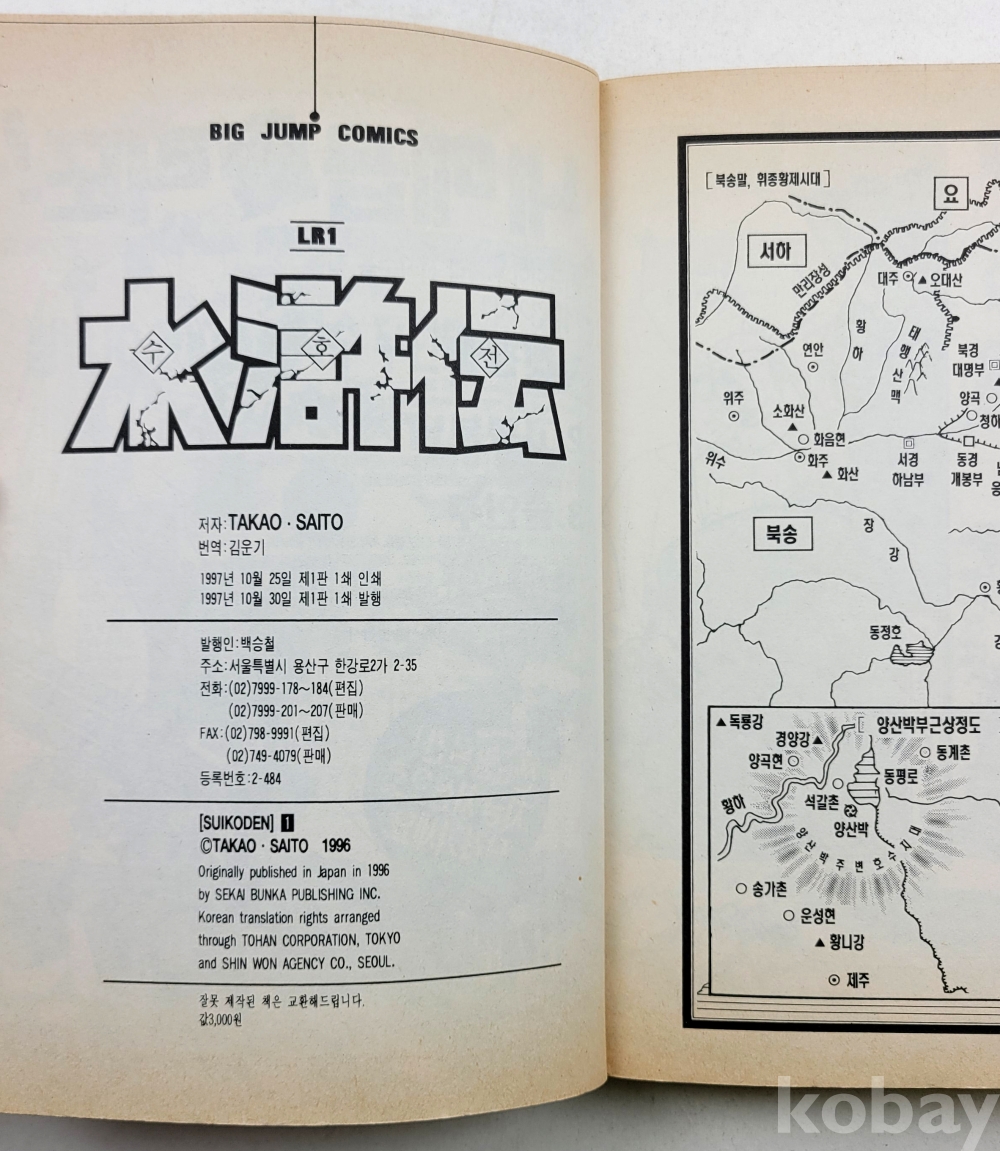 물 품 명 | 수호전 Vol.(1,2,3)완결 총3권 / TAKAO SAITO / 빅점프코믹스 / 1997년 초판 / 서울문화사 |
