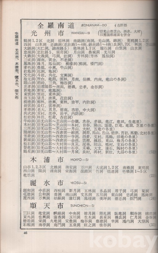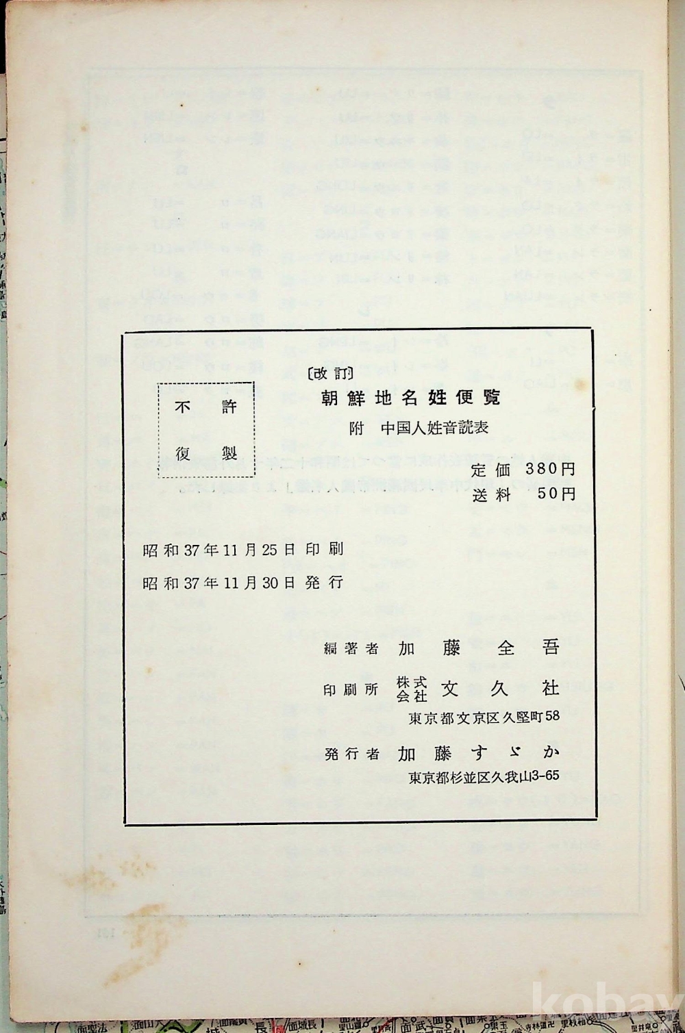 도별 예하 소속 도시명, 조선 씨을 일본어와 영어로 읽는 음독법을 기재해 놓고