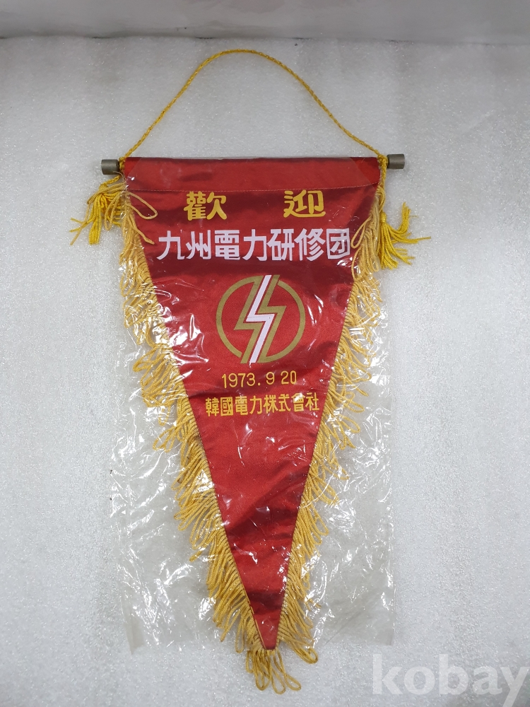{천원경매}1-2540 1973년 큐슈전력 연수단 삼각깃발 (29cm)