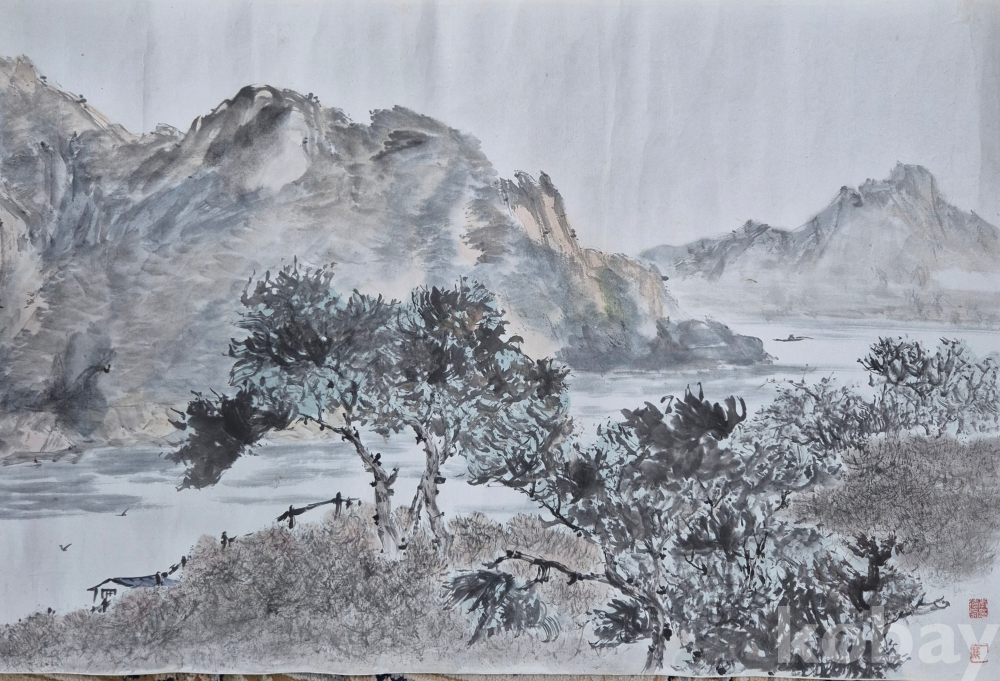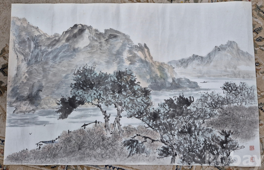 작품성 최고의 상당한 수준의 화가분 작품 추정되는 멋진 산수화'이오니 작품 이미지상 수결 및 낙관'등
