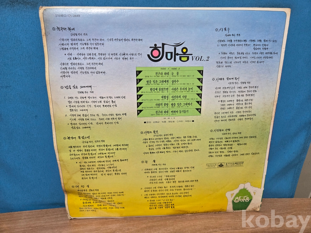 | 자켓상태 | EX : 약간의 마모, 모서리 찢김 존재 | 음반상태 | EX : 재생에 영향 없는 가벼운 기스 존재 | 발매정보 | 초반 | 가사지여부 | 무 |