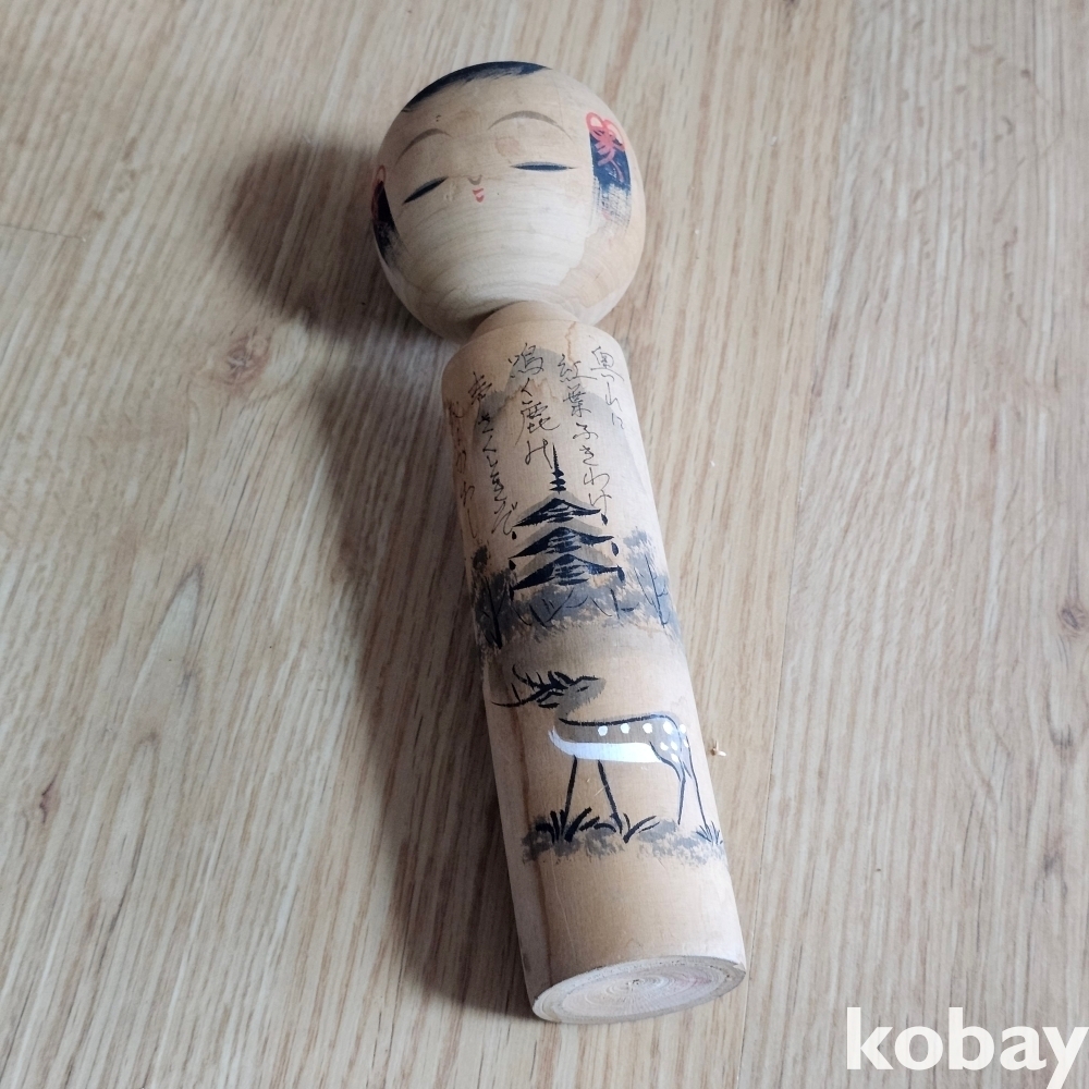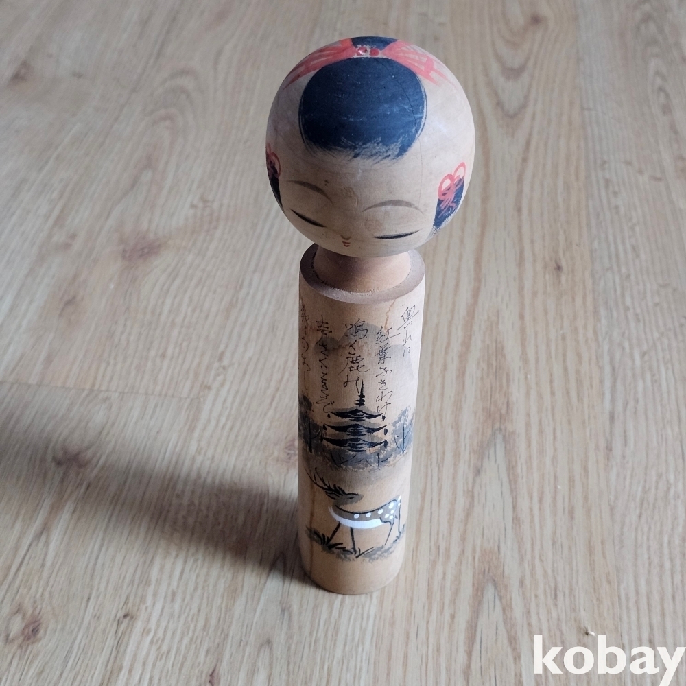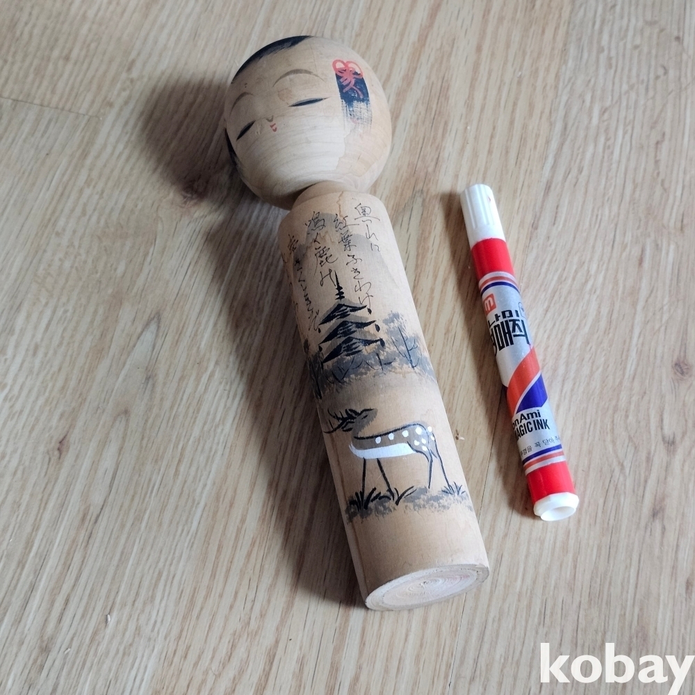 (((일본木刻인형))) 오래전 일본에서 통나무를 깍아 만들고 채색을입힌 빈티지 목각 인형 (높이 23 cm)