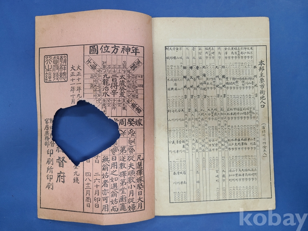 朝鮮總督府編製 대정12년 朝鮮民曆/뒷표지 중앙부 탈락
