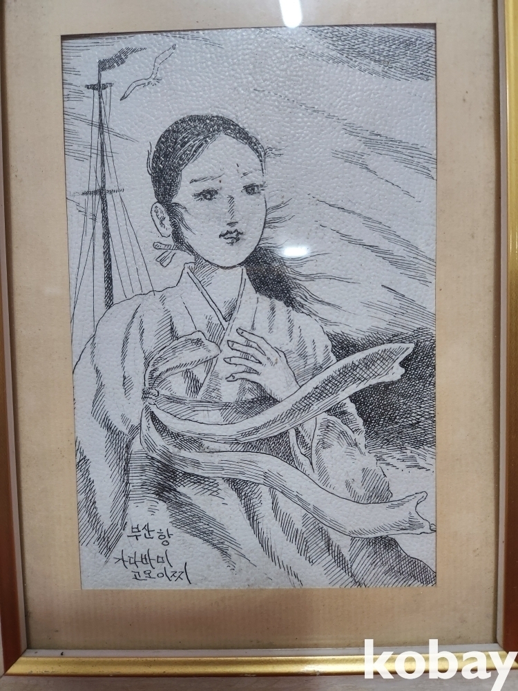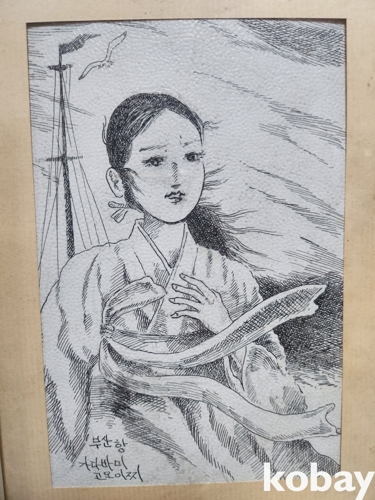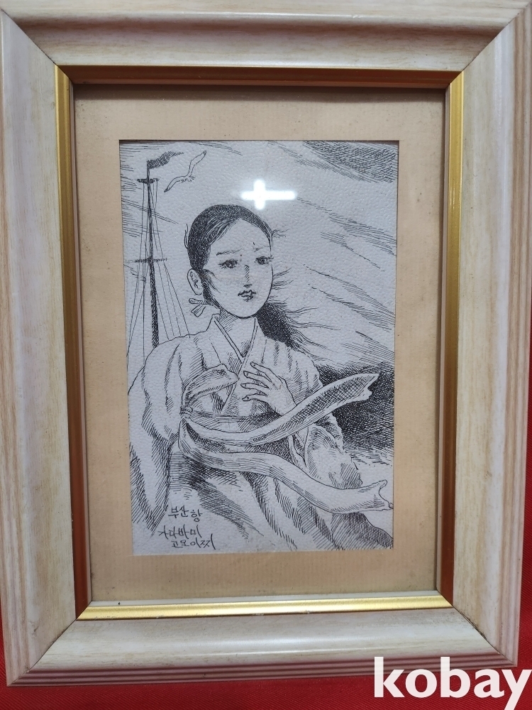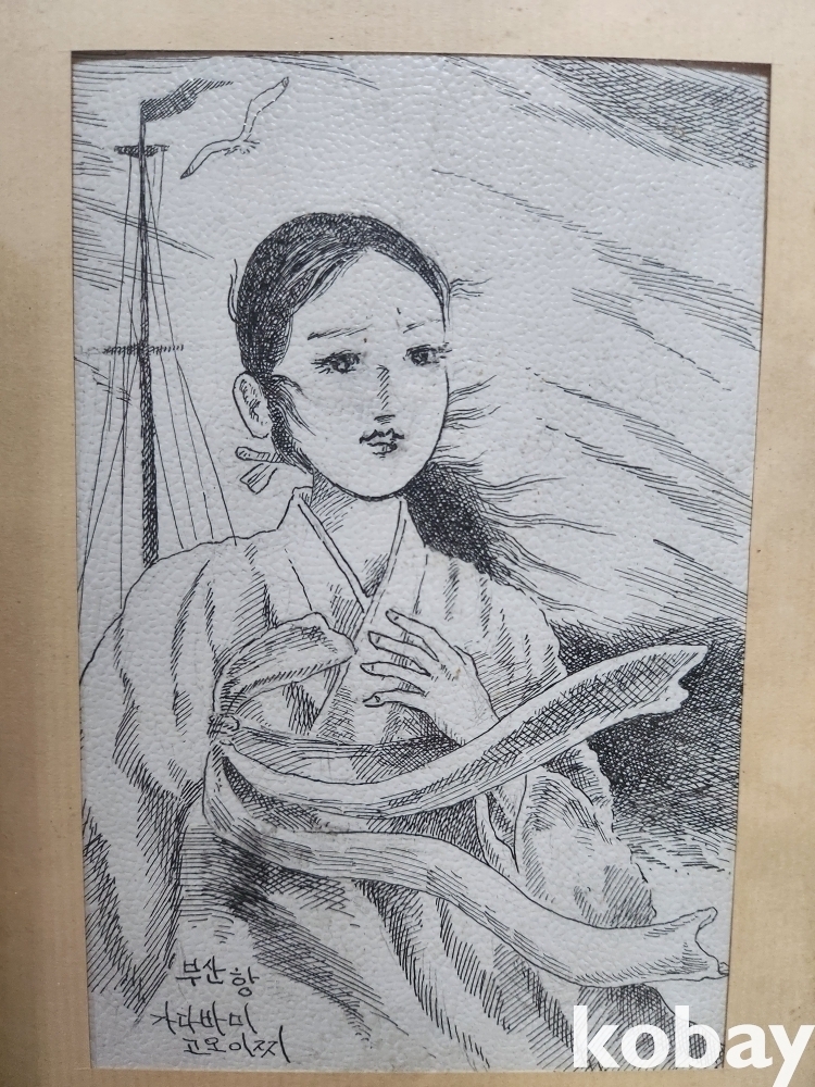일본 화가 作 부산항 연필화 특수인쇄입니다,