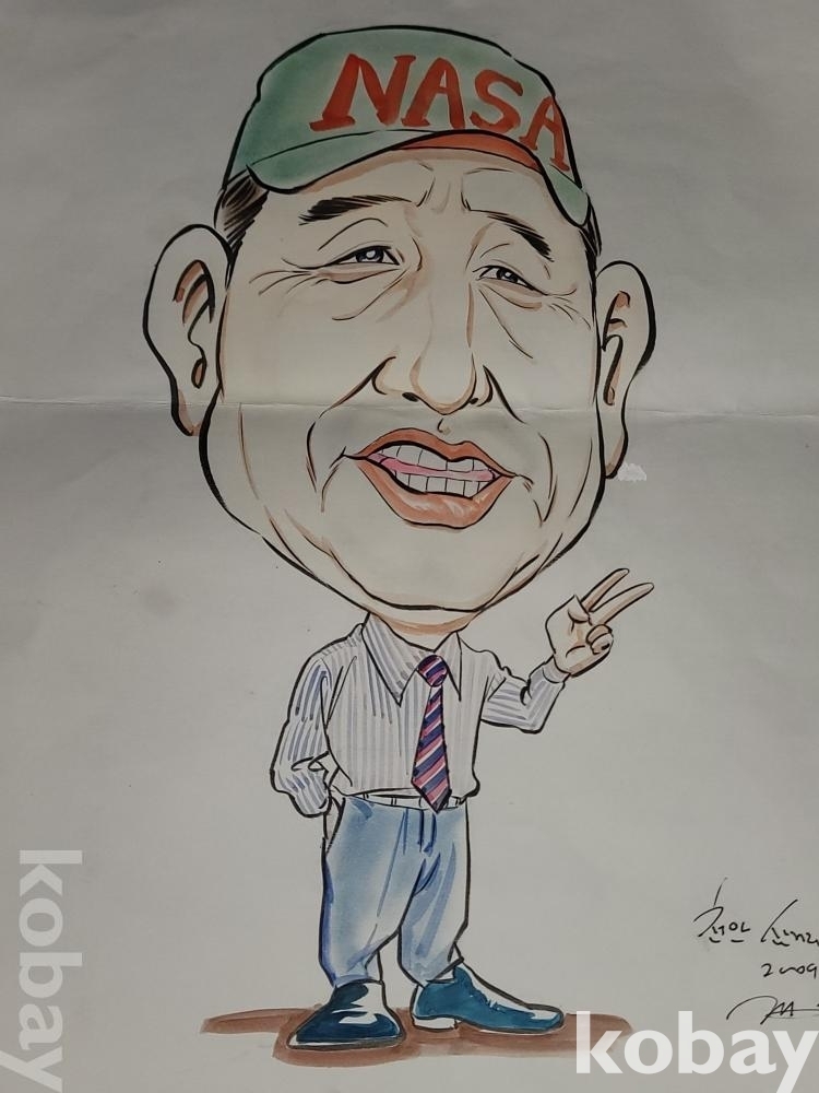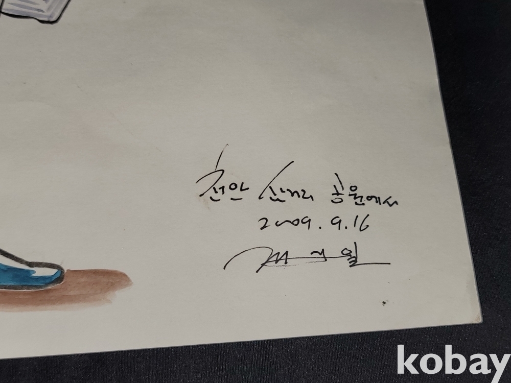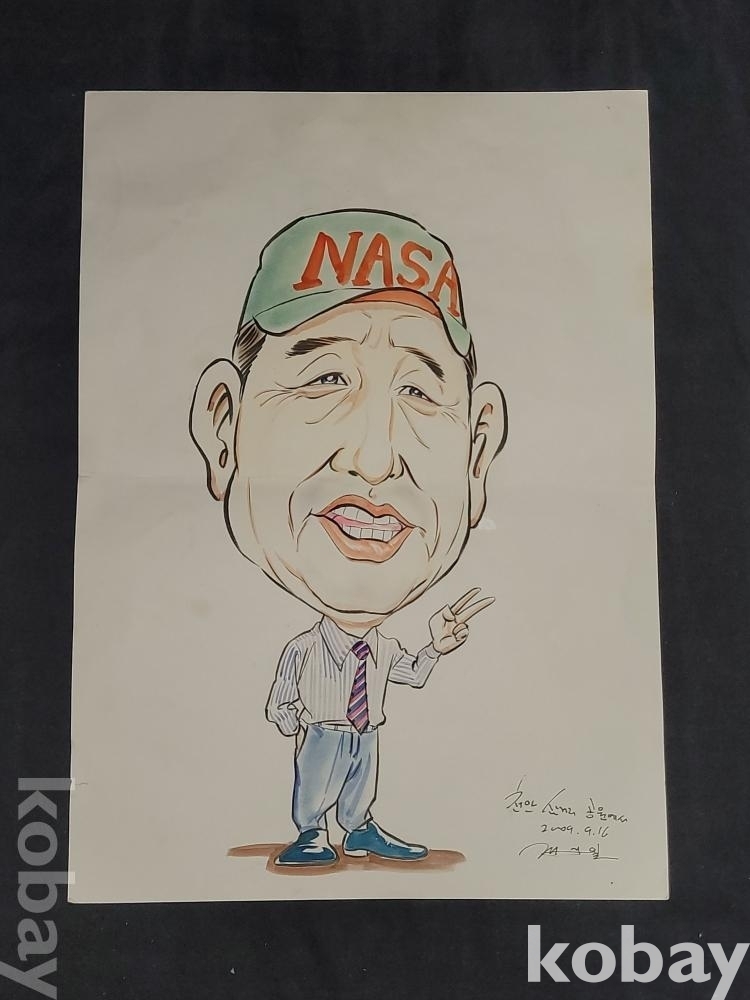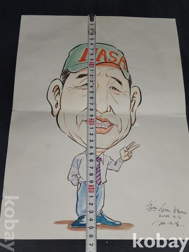 작가 싸인이 있는 이명박으로 추정되는 캐리커쳐 그림입니다.