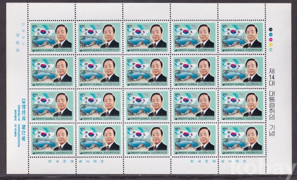 - 미사용 1993년 제 14대 김영삼 대통령 취임 기념 전지