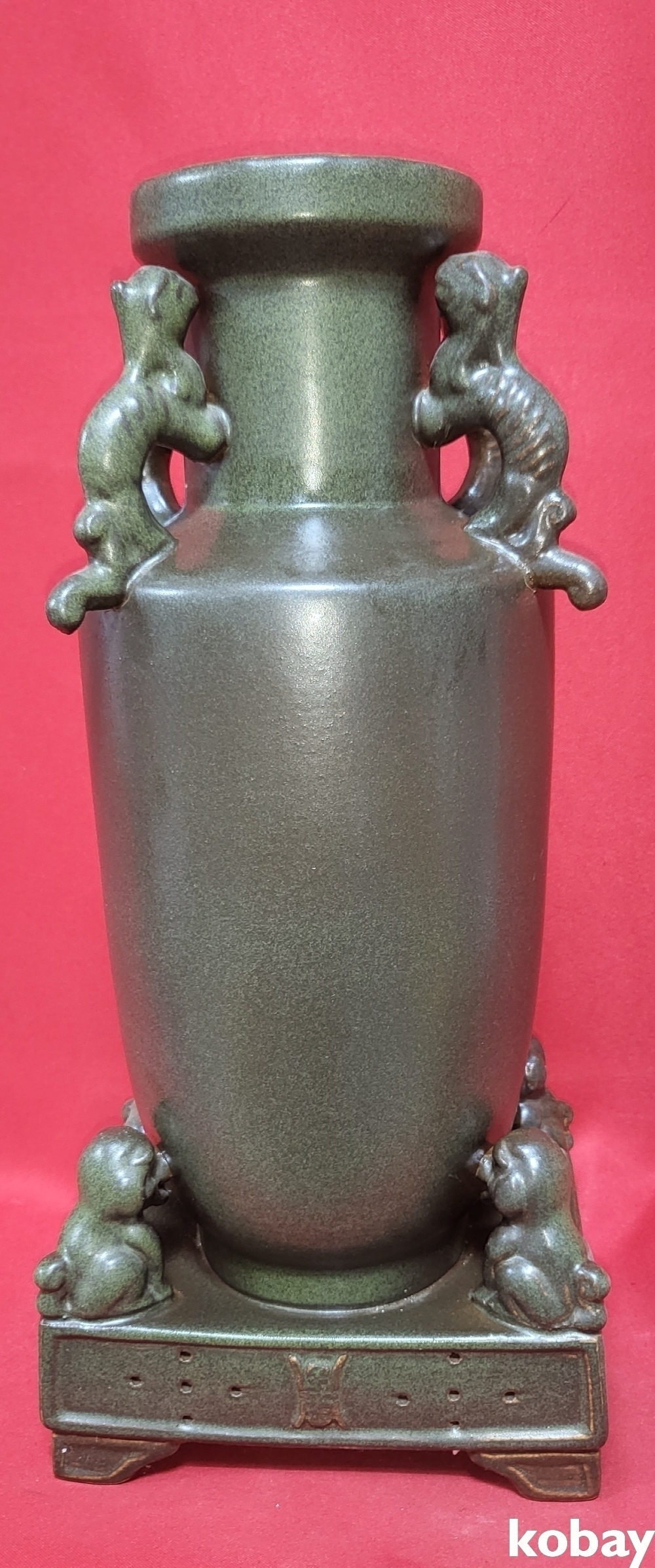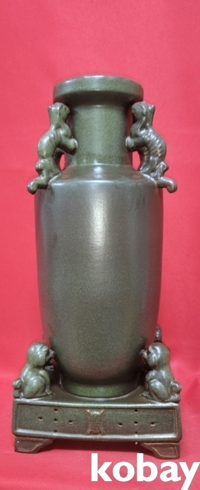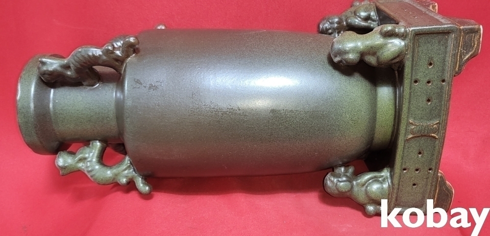 용천요( 龍泉窯) 4용 4사자 문양 사각 받침병입니다,
