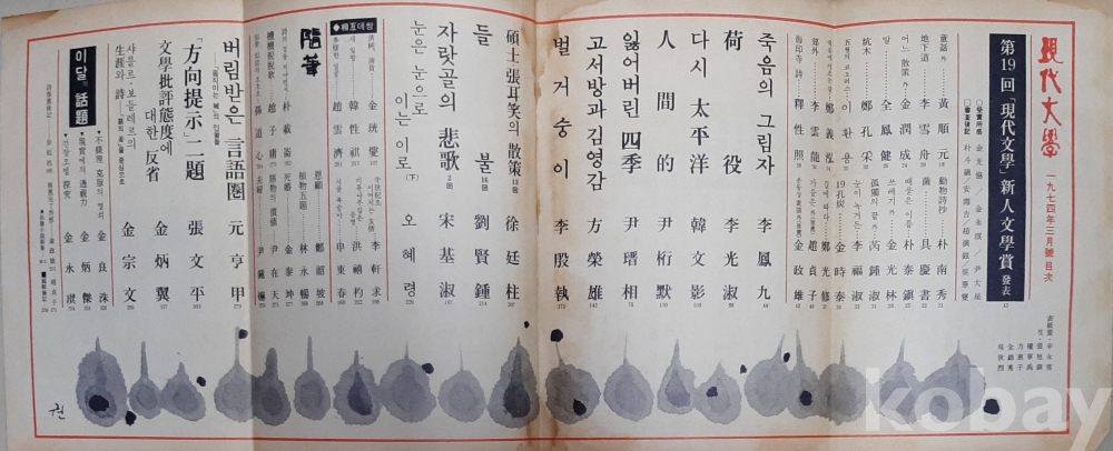 (별고)현대문학1974년3월호 NO231 표지 신영상